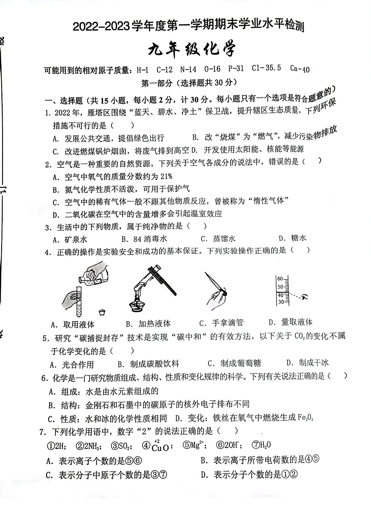 陕西省西安市2022—2023学年九年级上学期期末学业水平检测试题化学(科粤版)