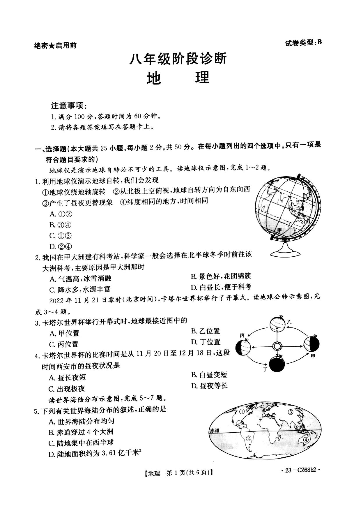 陕西省西安市莲湖区2022-2023学年度第一学期期末统考八年级地理(中图版)