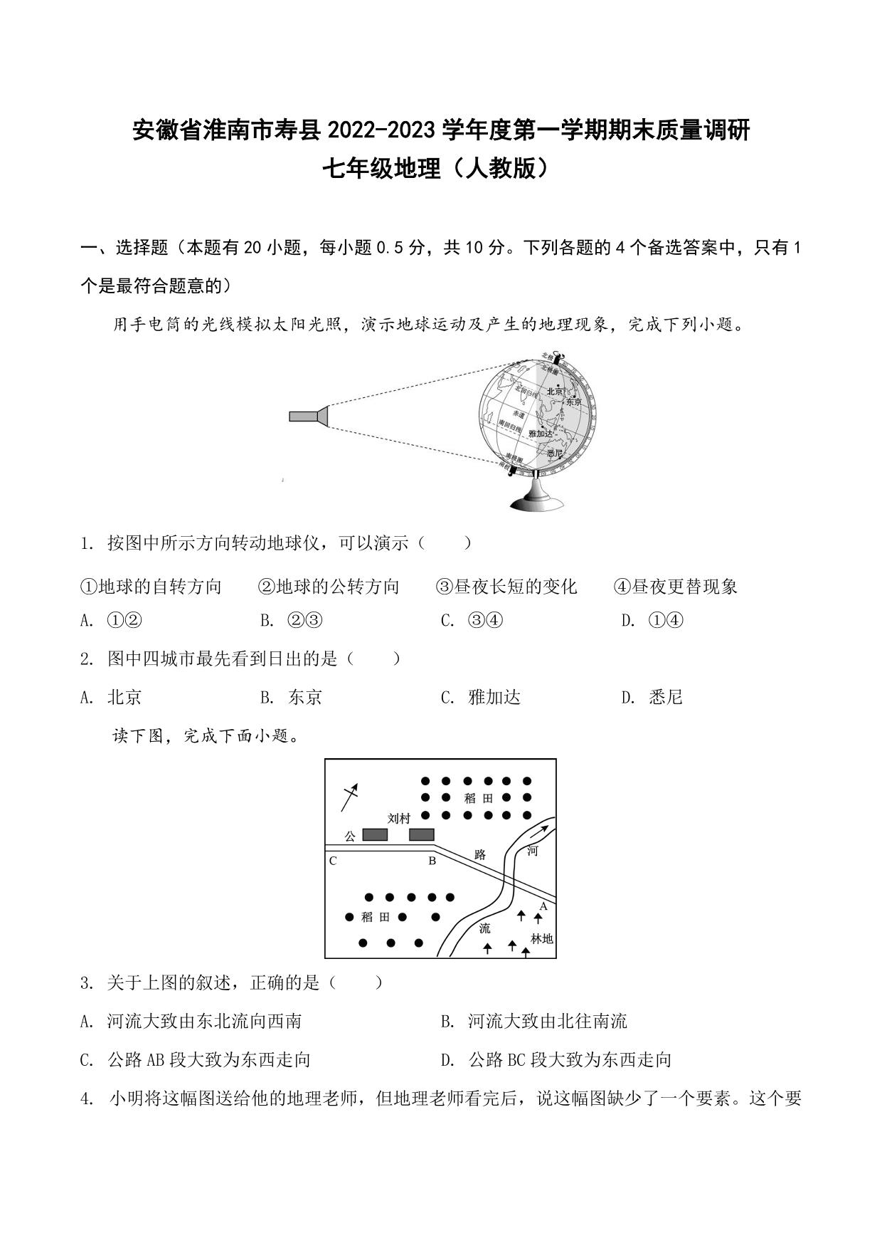 安徽省淮南市寿县2022-2023学年度第一学期期末质量调研七年级地理(人教版)