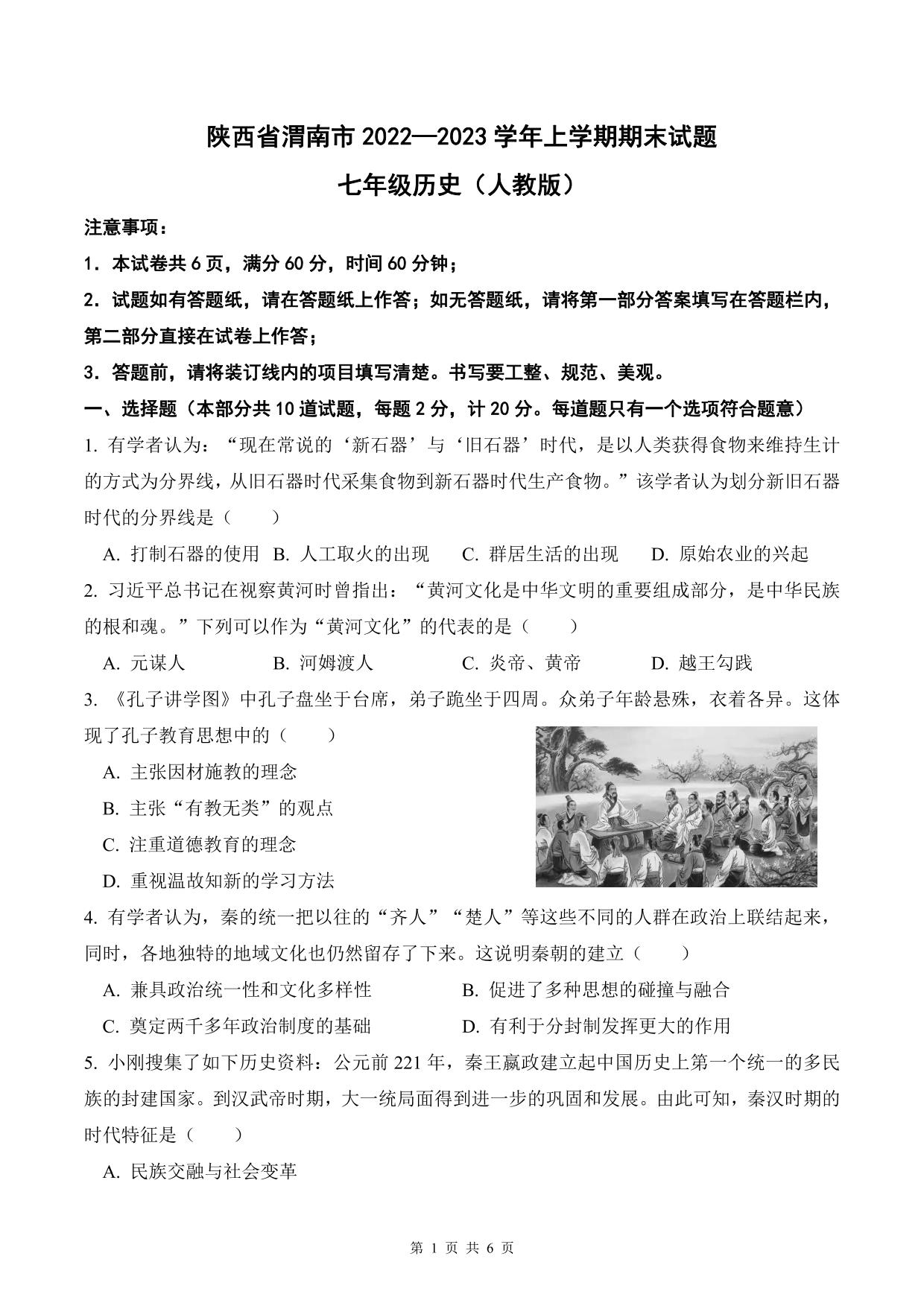 陕西省渭南市2022—2023学年上学期期末试题七年级历史(人教版)