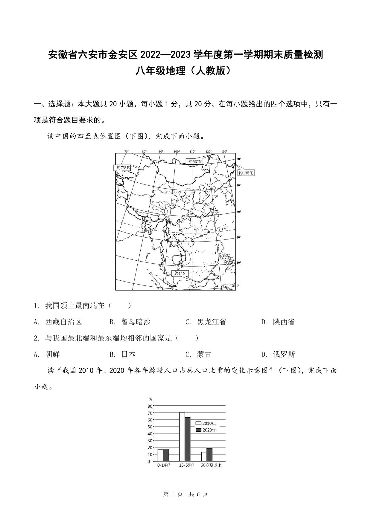 安徽省六安市金安区2022-2023学年度第一学期期末质量检测八年级地理(人教版)