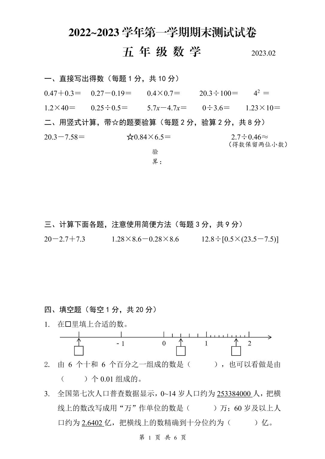 五年级数学苏教版上册期末卷