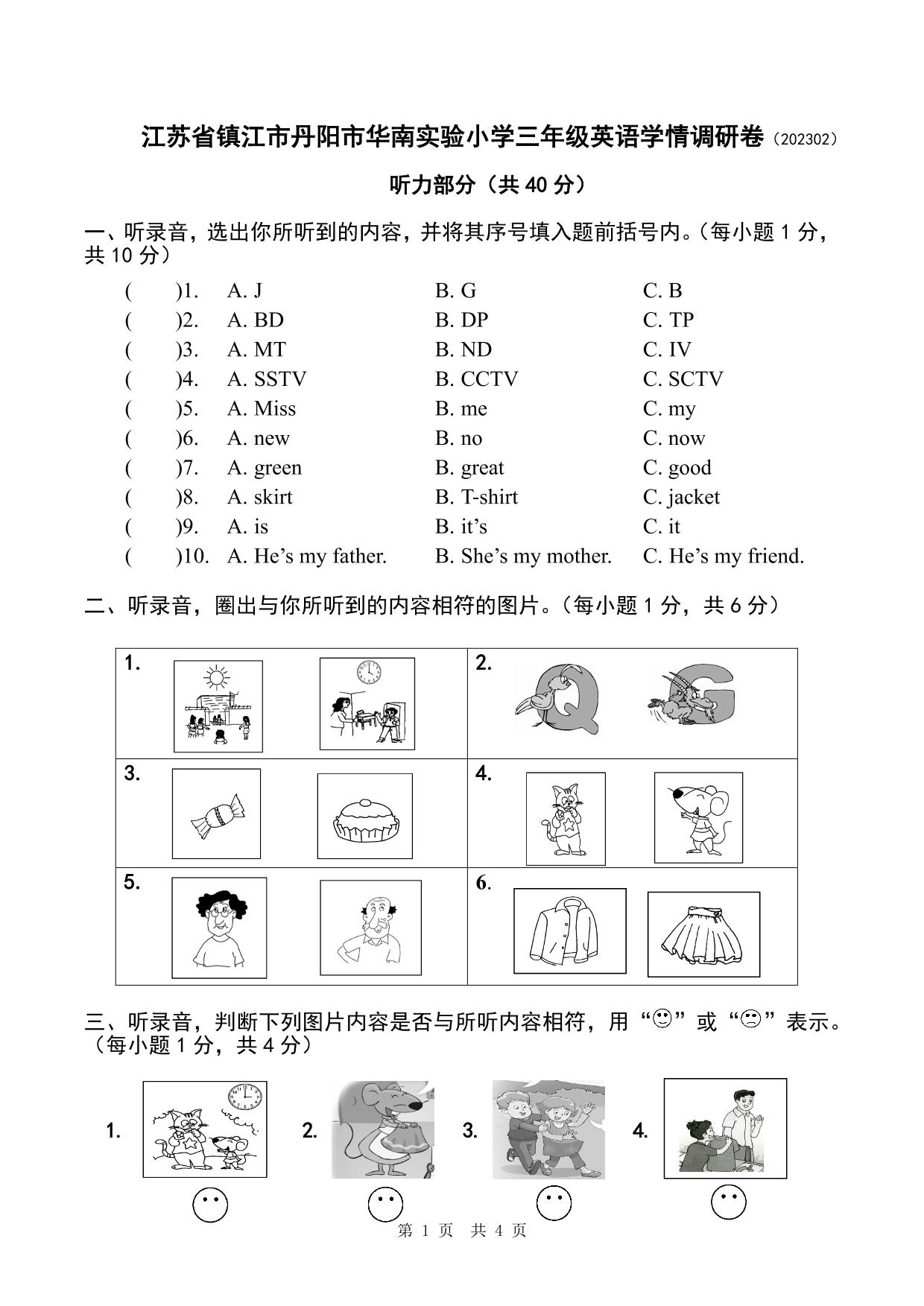 江苏省镇江市丹阳市华南实验小学2022-2023学年上学期期末学情调研卷三年级英语(译林版)【无听力音频】