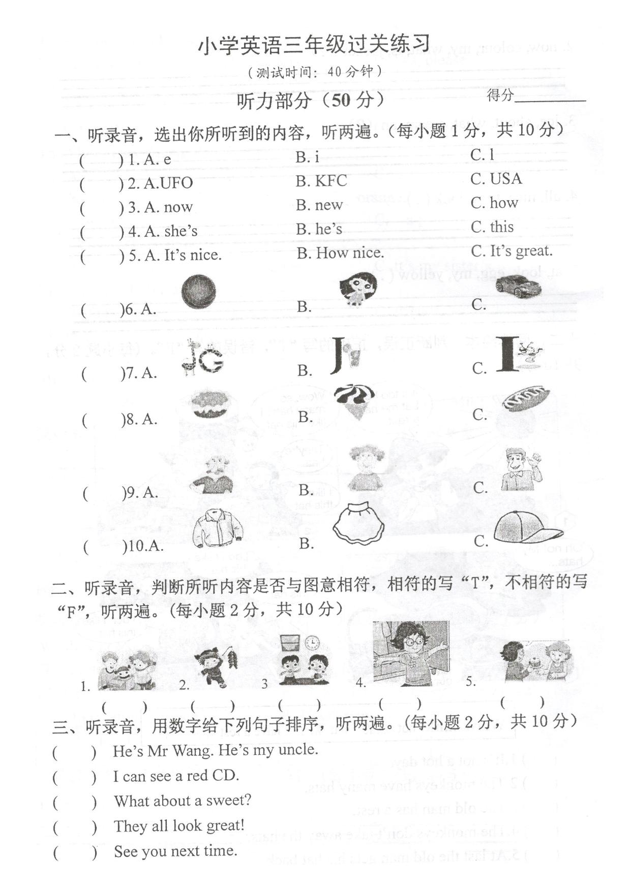三年级英语译林版(译林牛津版)上册期末卷