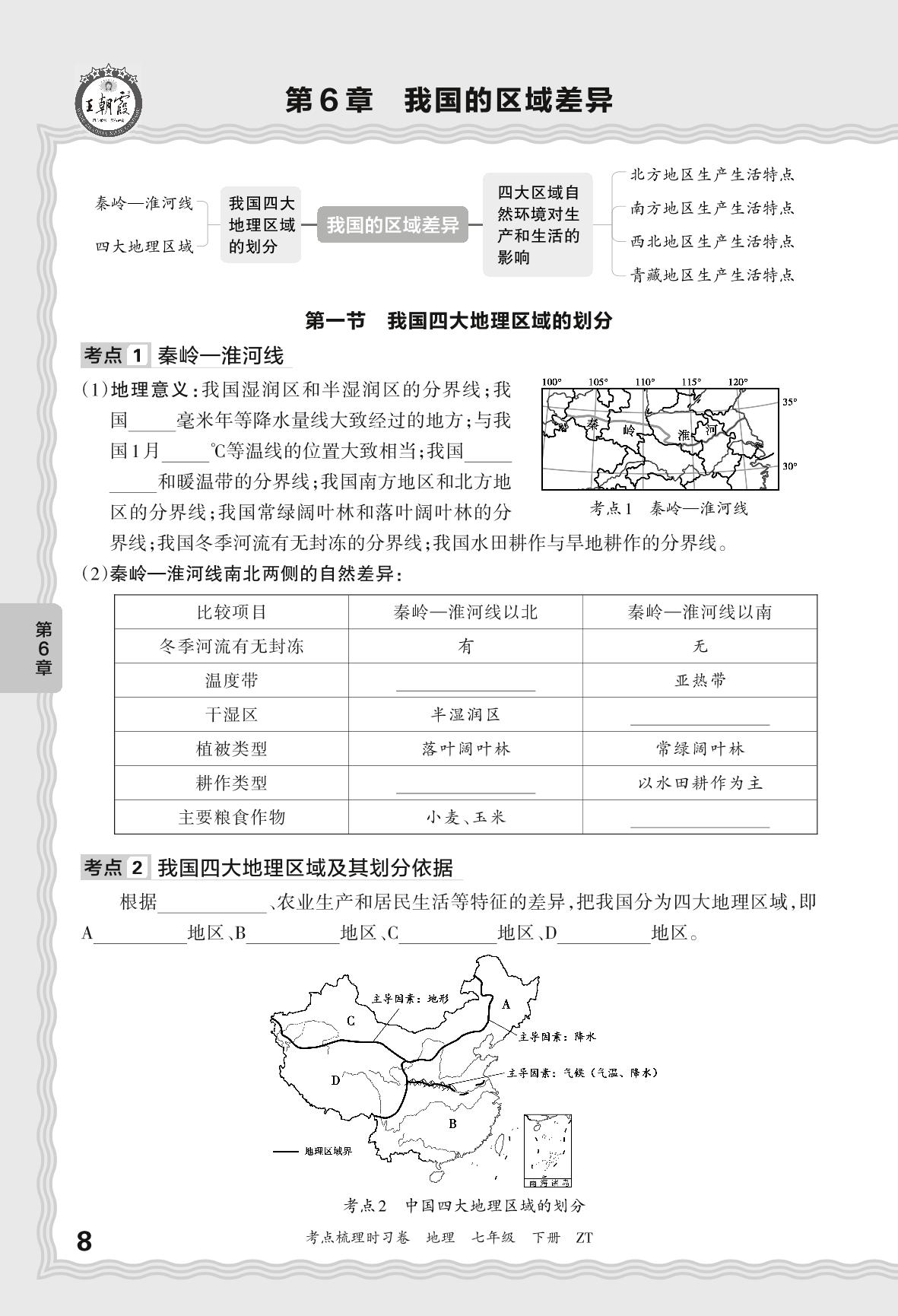 2024春下册七年级地理中图版 考点梳理手册——第6章 我国的区域差异