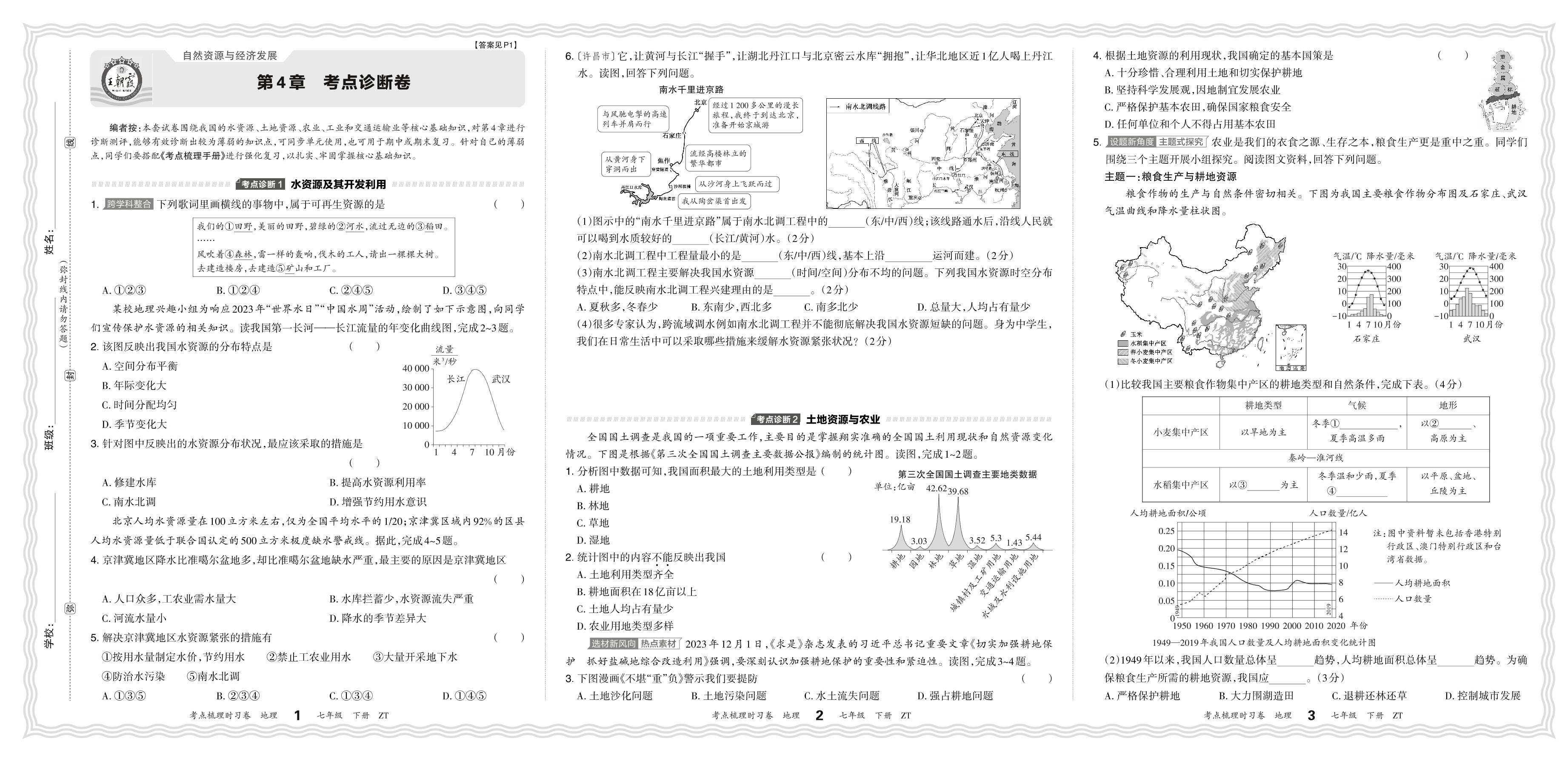2024春下册七年级地理中图版 第4章 考点诊断卷