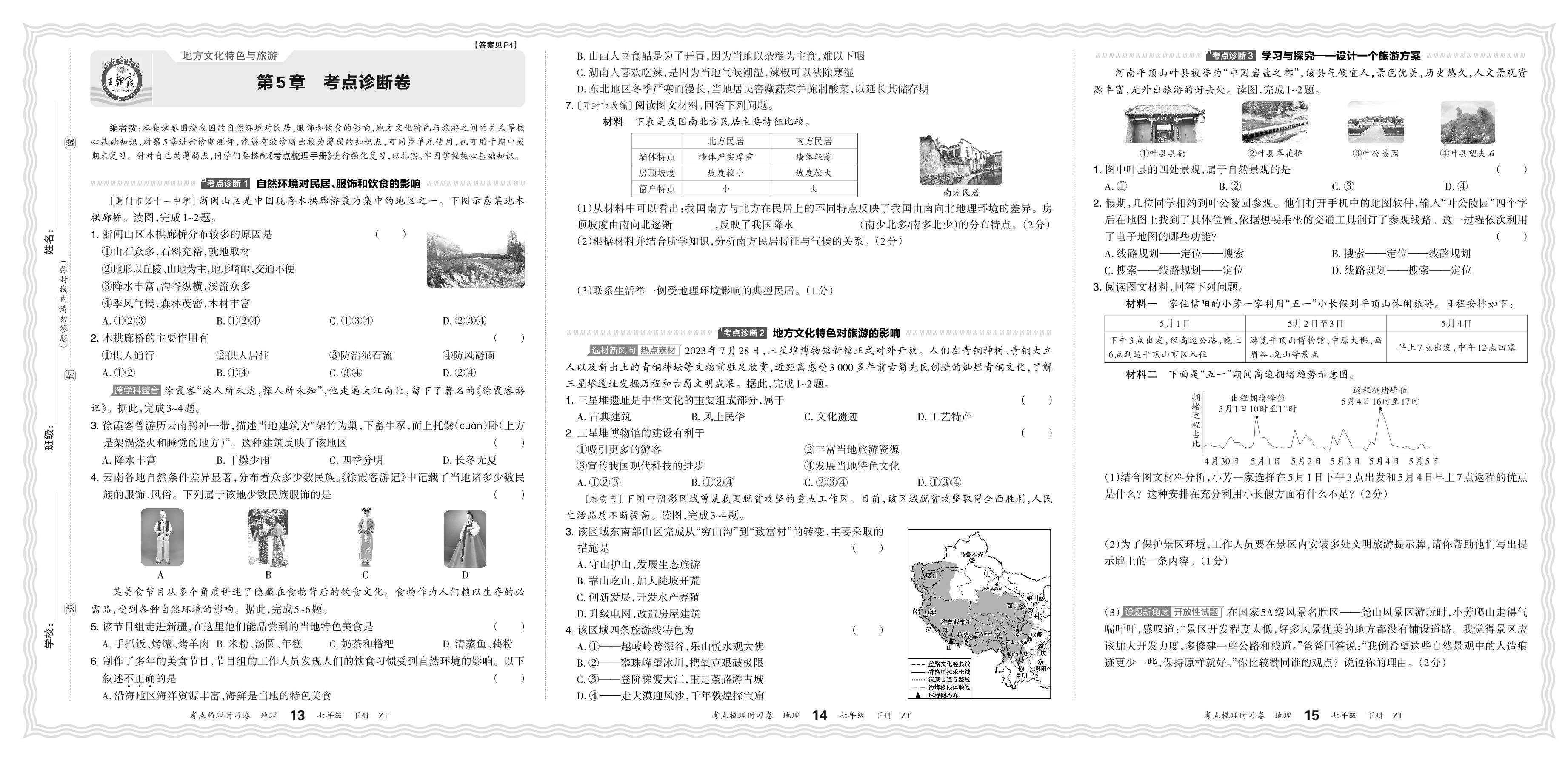 2024春下册七年级地理中图版 第5章 考点诊断卷