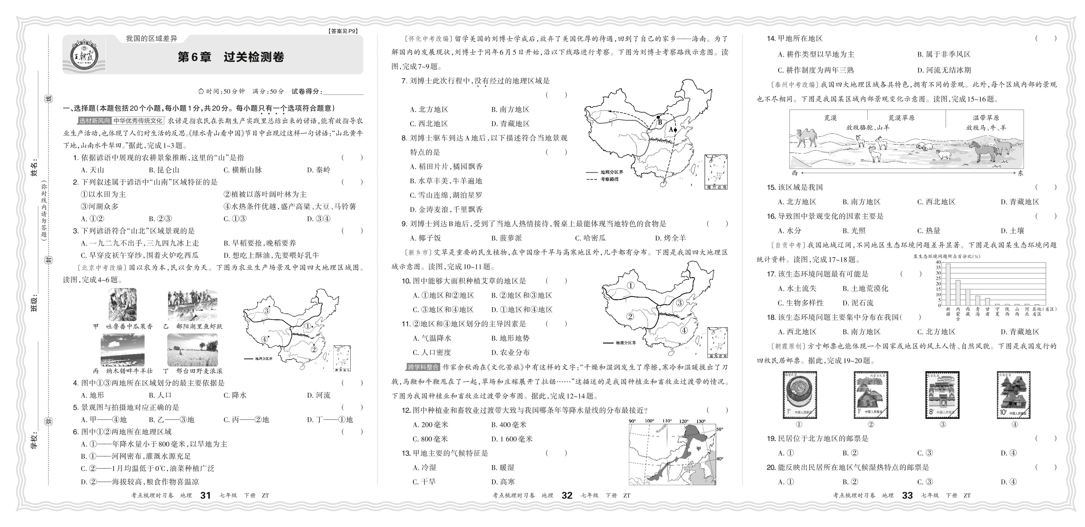 2024春下册七年级地理中图版 第6章 过关检测卷