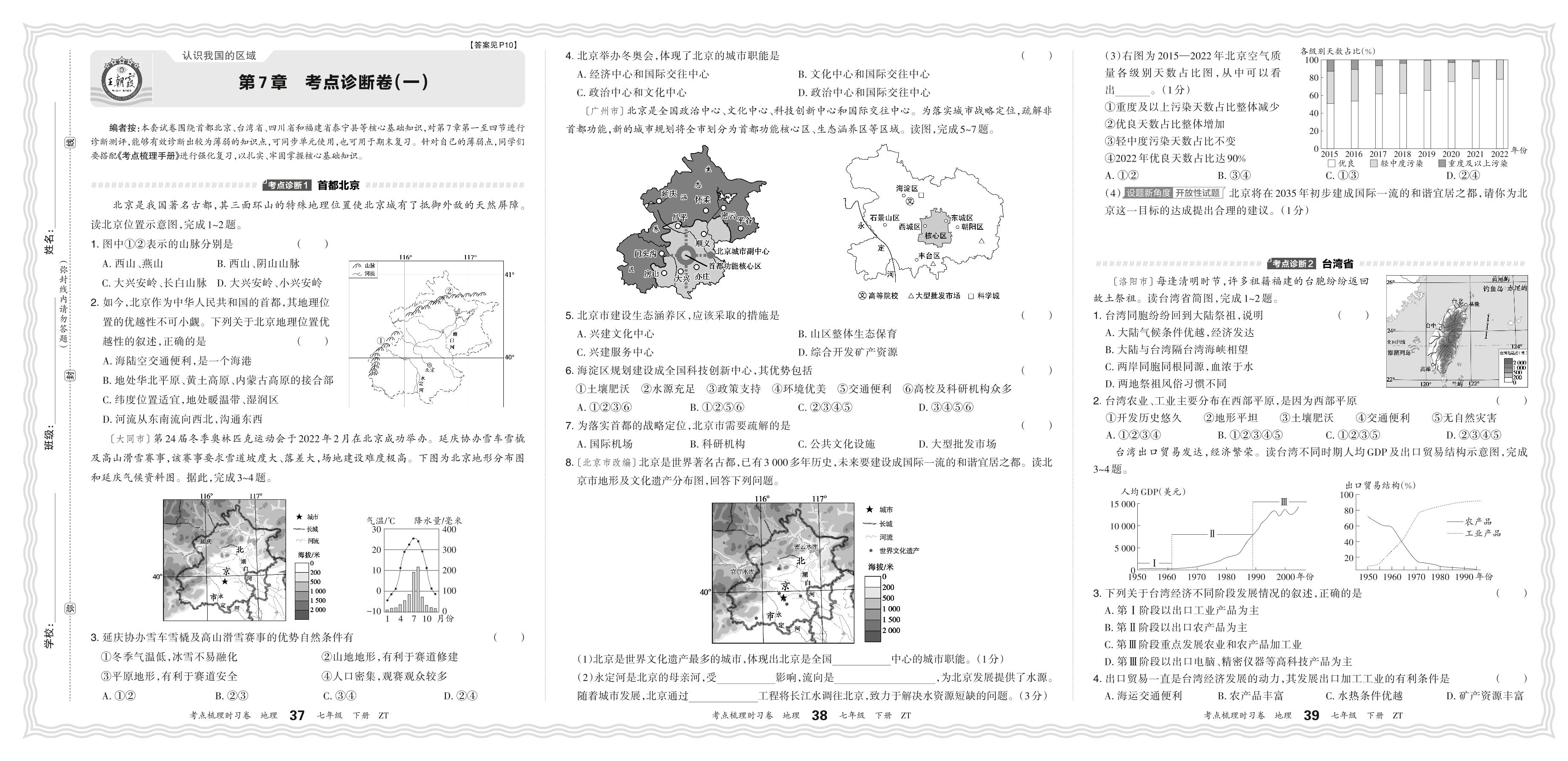 2024春下册七年级地理中图版 第7章 考点诊断卷(一)