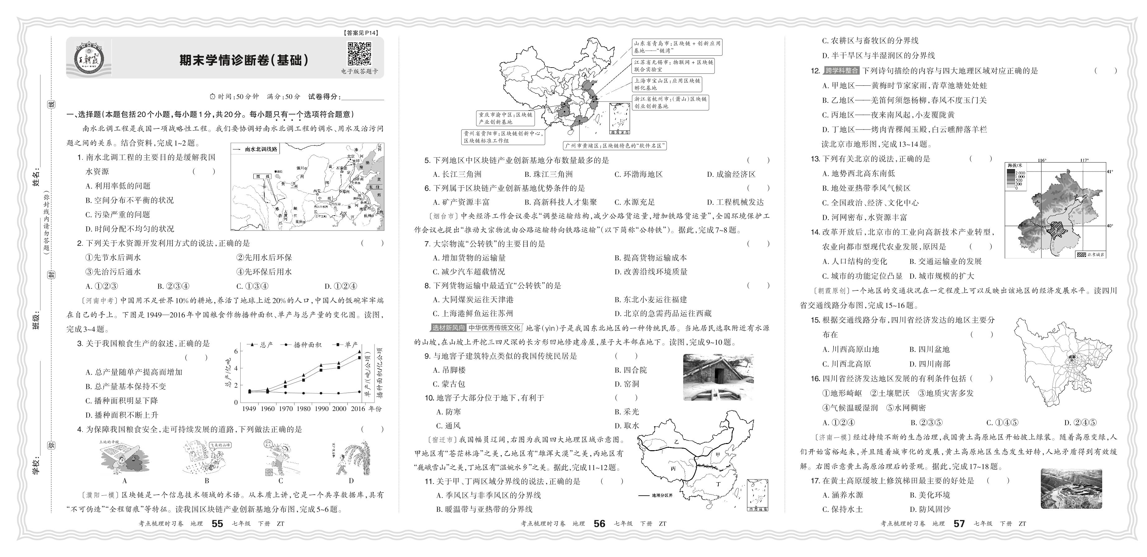 2024春下册七年级地理中图版 期末学情诊断卷(基础)