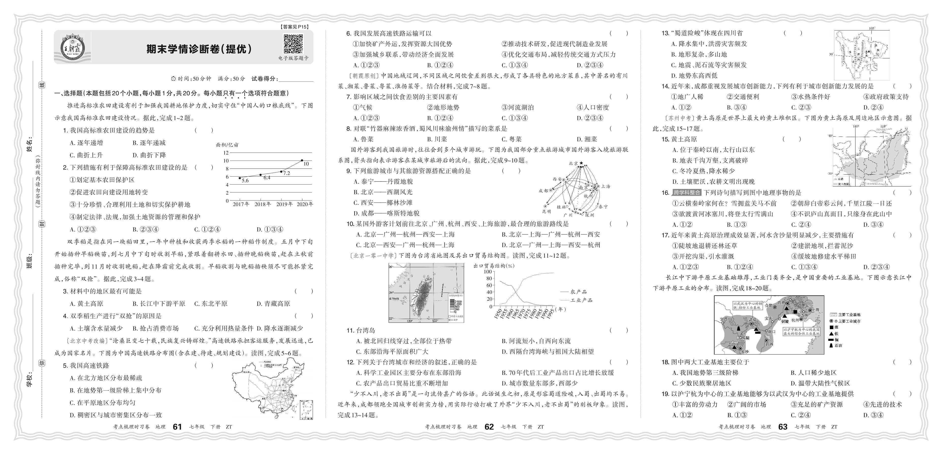 2024春下册七年级地理中图版 期末学情诊断卷(提优)