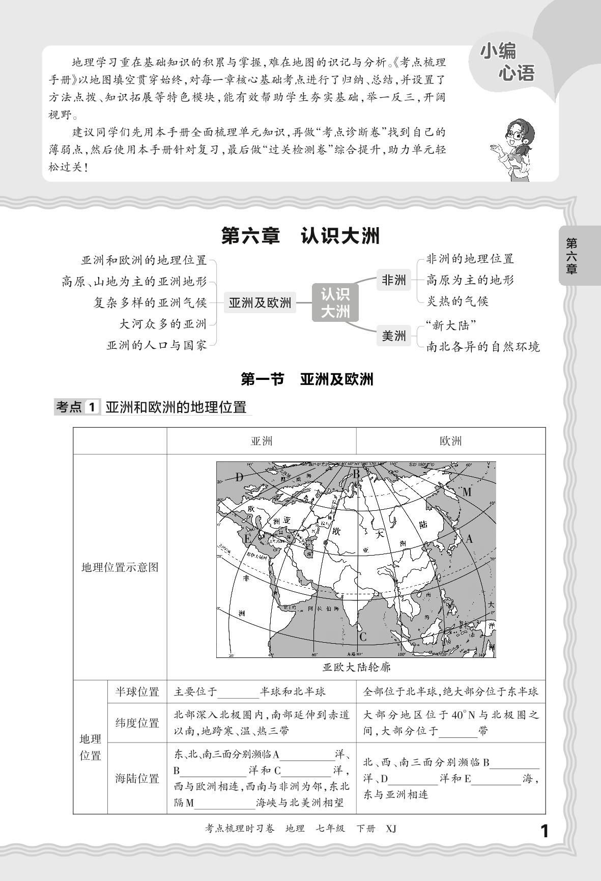 2024春下册七年级地理湘教版 考点梳理手册——第六章 认识大洲