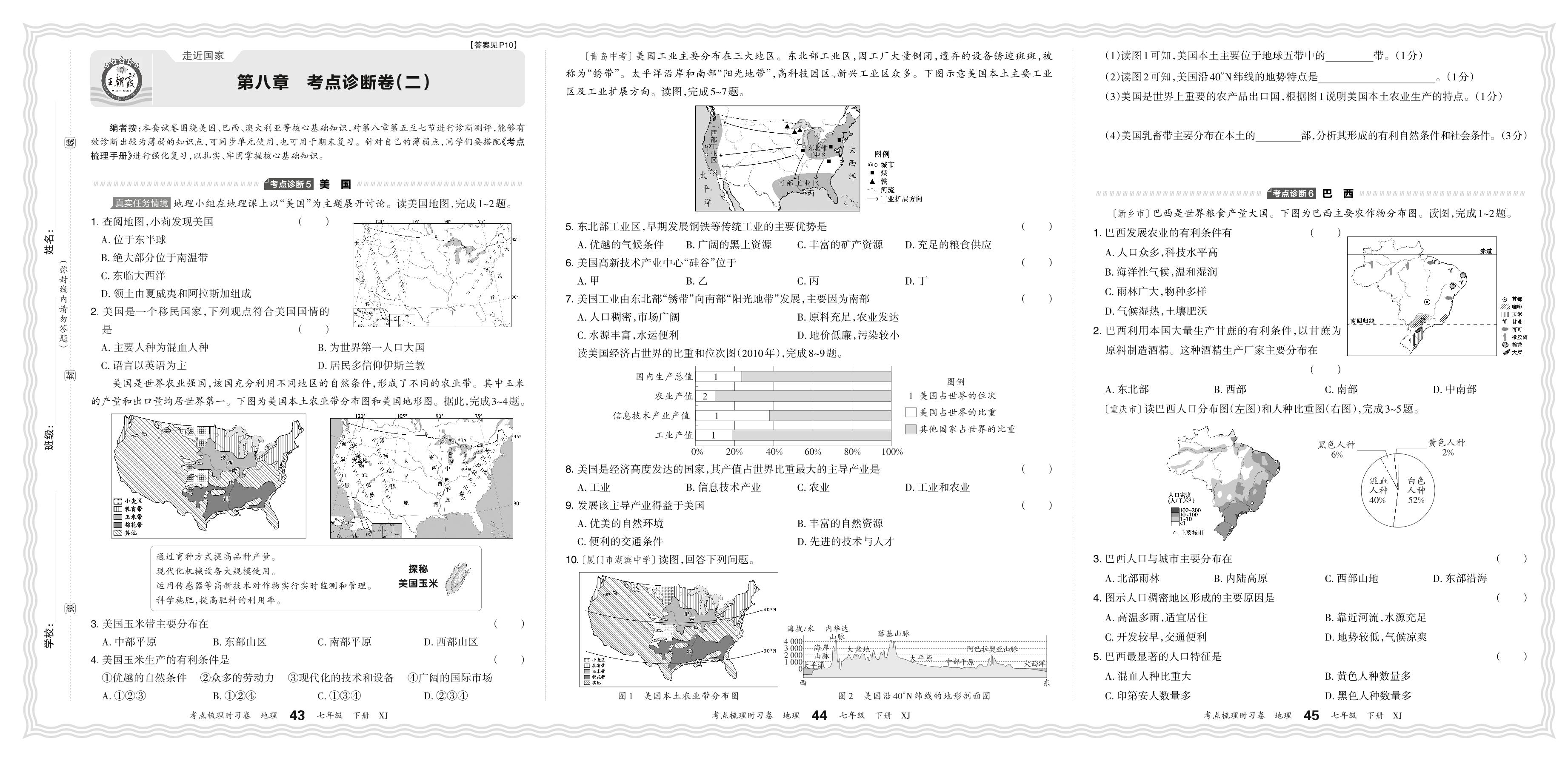 2024春下册七年级地理湘教版 第八章 考点诊断卷(二)
