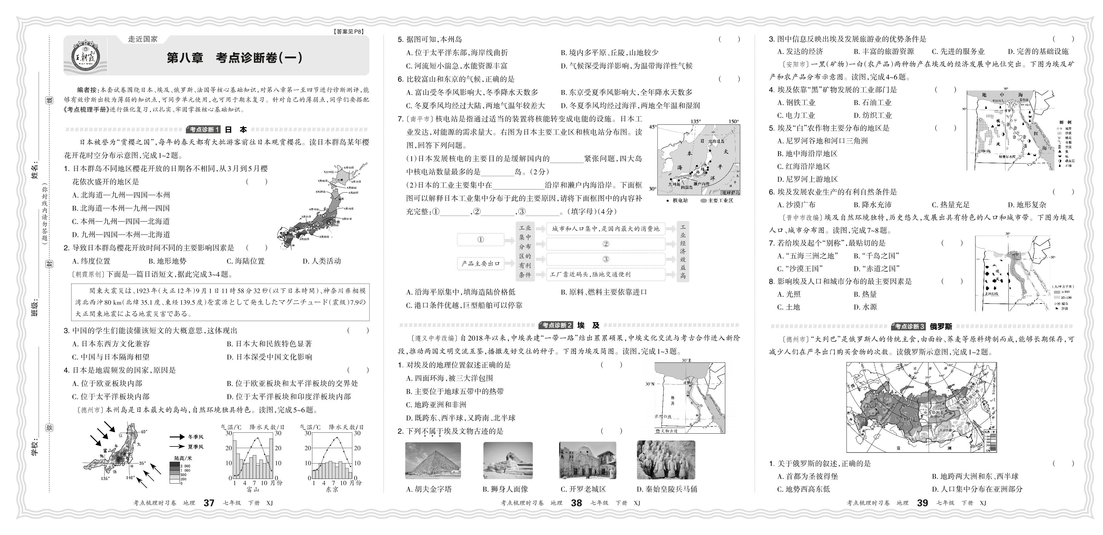 2024春下册七年级地理湘教版 第八章 考点诊断卷(一)