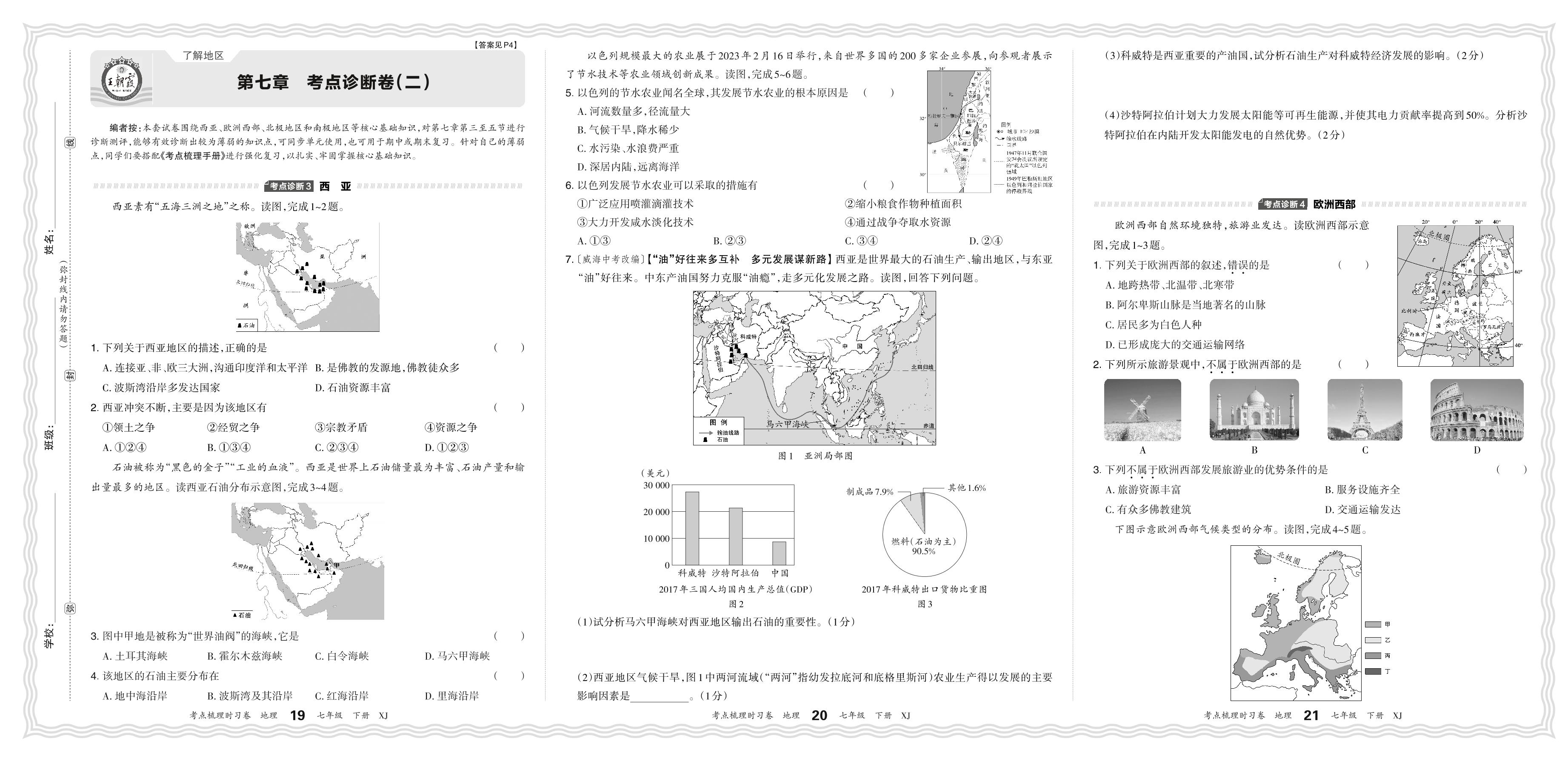 2024春下册七年级地理湘教版 第七章 考点诊断卷(二)