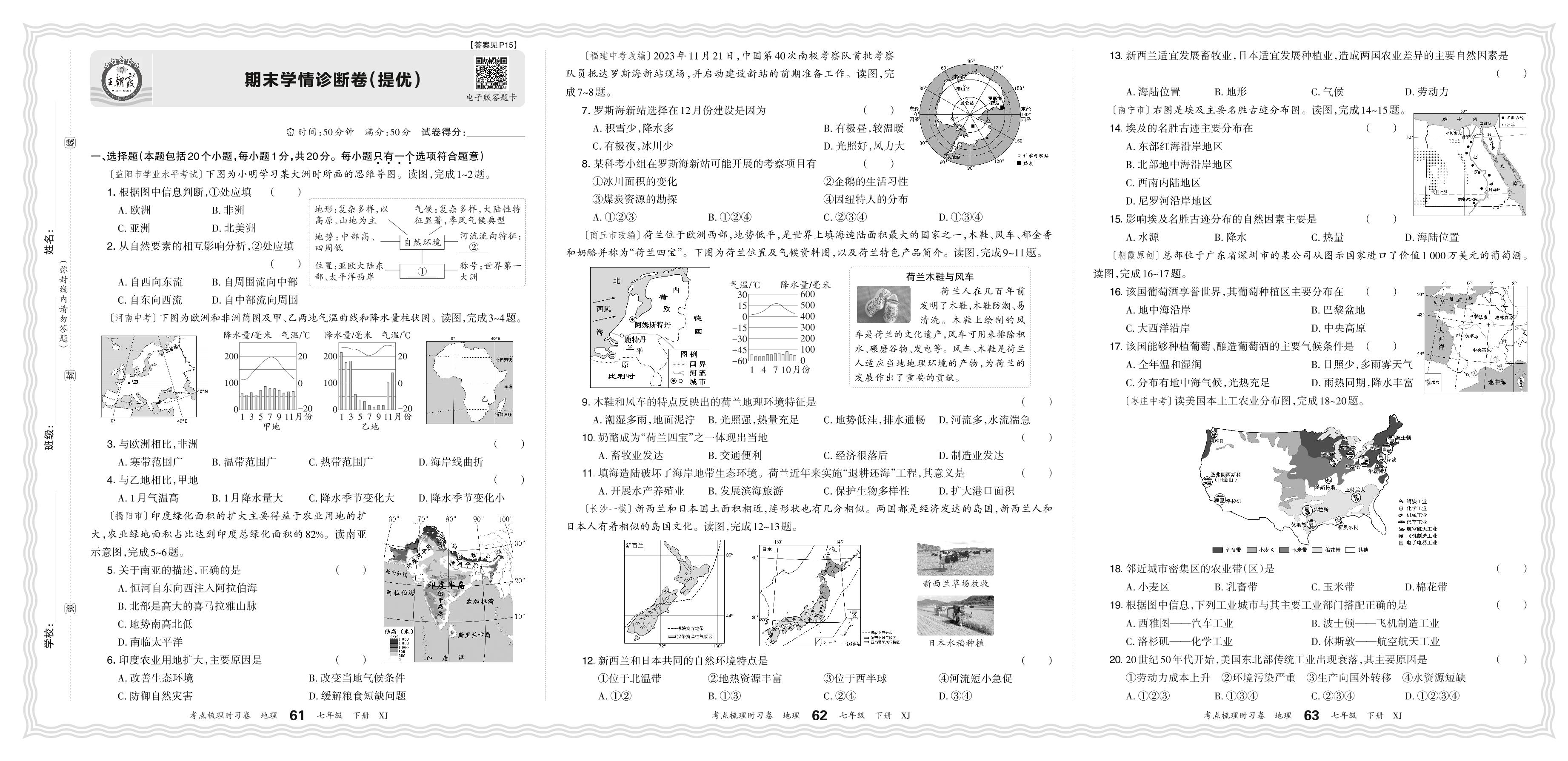 2024春下册七年级地理湘教版 期末学情诊断卷(提优)