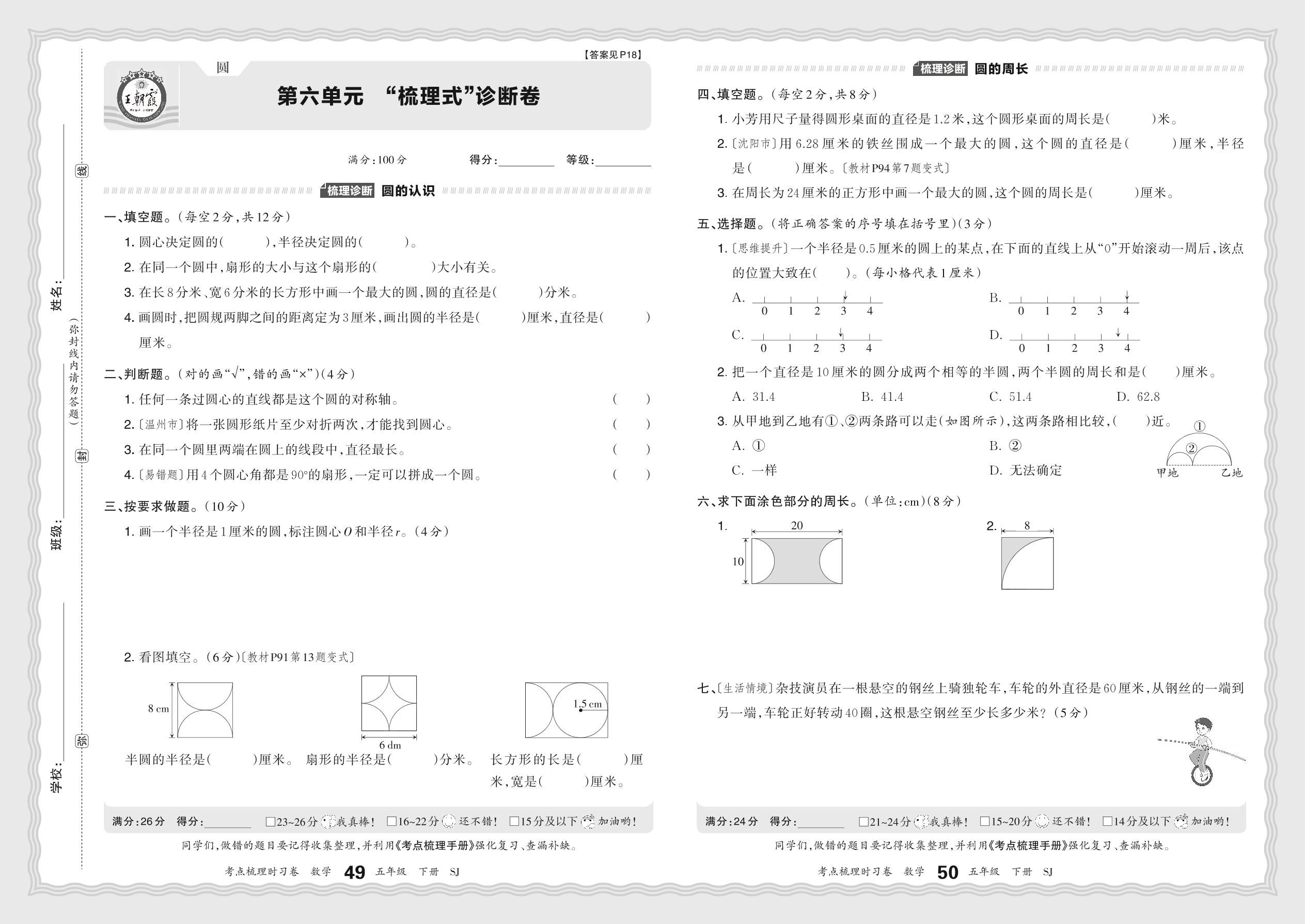 2024春下册五年级数学苏教版 第六单元 “梳理式”诊断卷