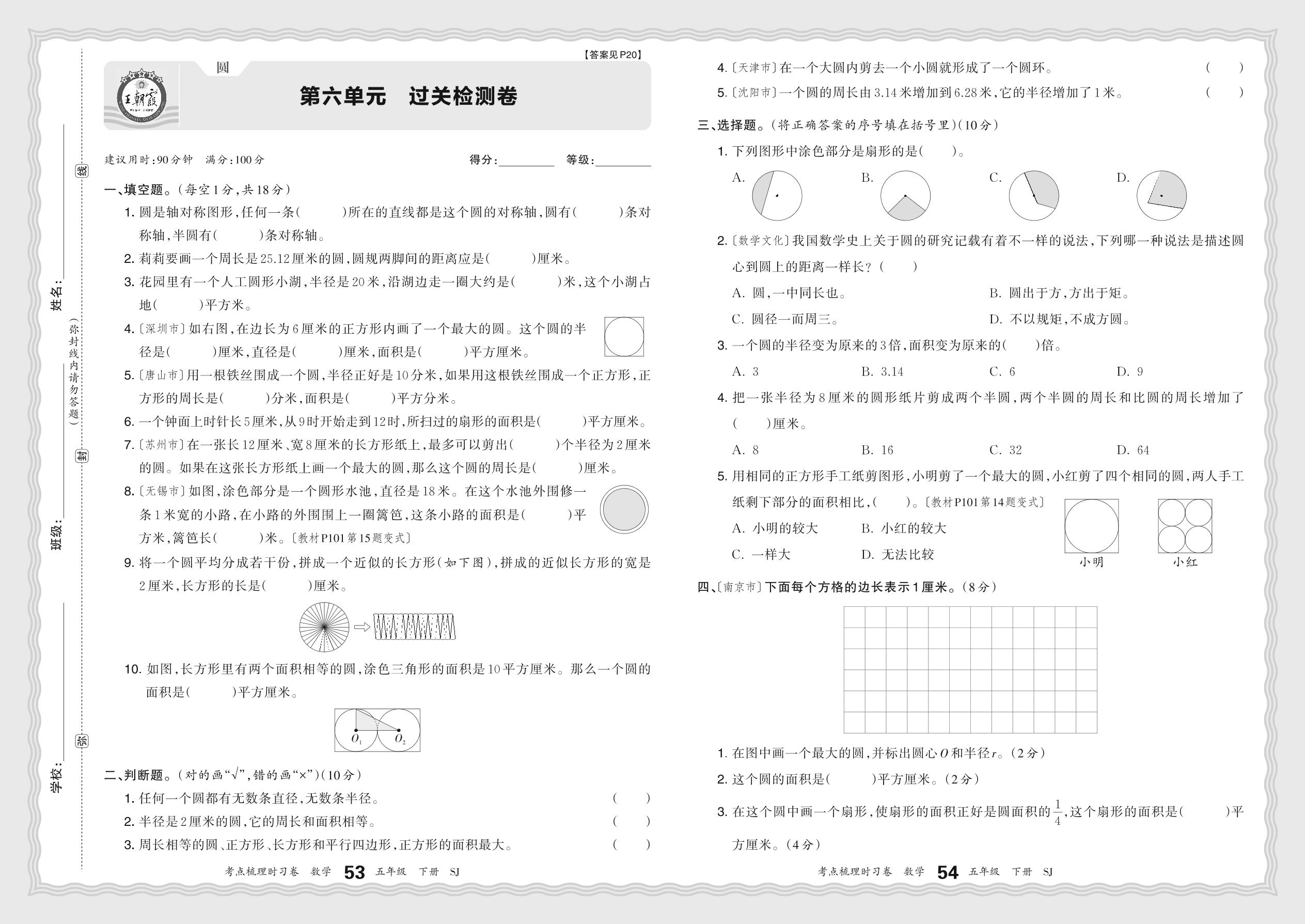 2024春下册五年级数学苏教版 第六单元 过关检测卷