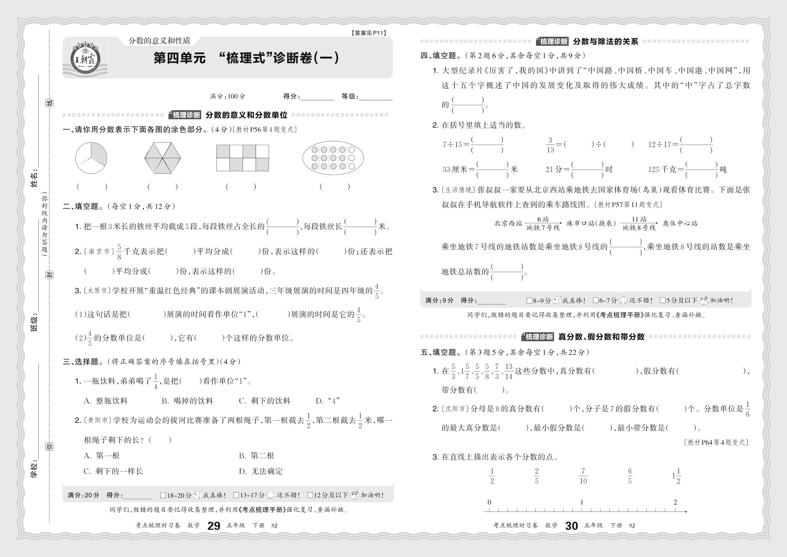 2024春下册五年级数学苏教版 第四单元 “梳理式”诊断卷(一)