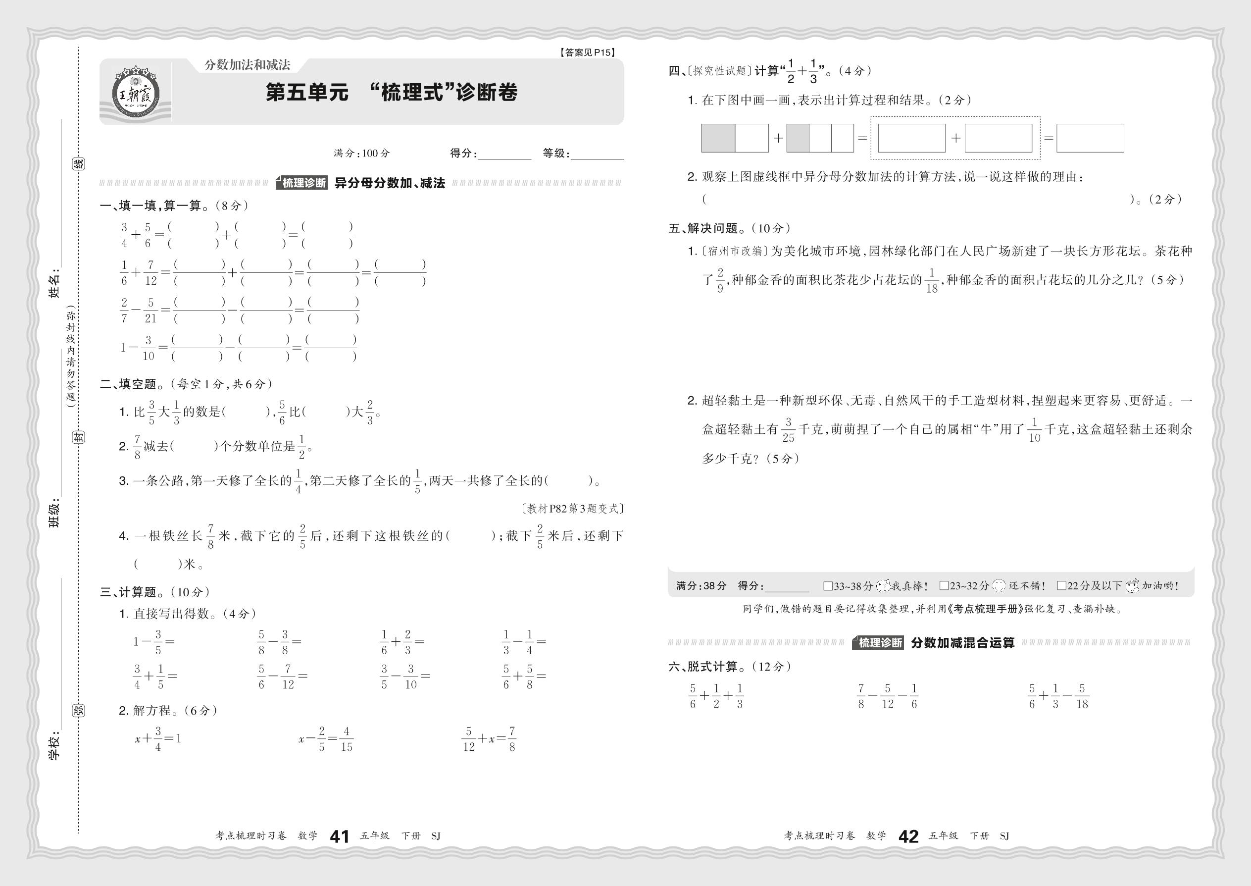 2024春下册五年级数学苏教版 第五单元 “梳理式”诊断卷