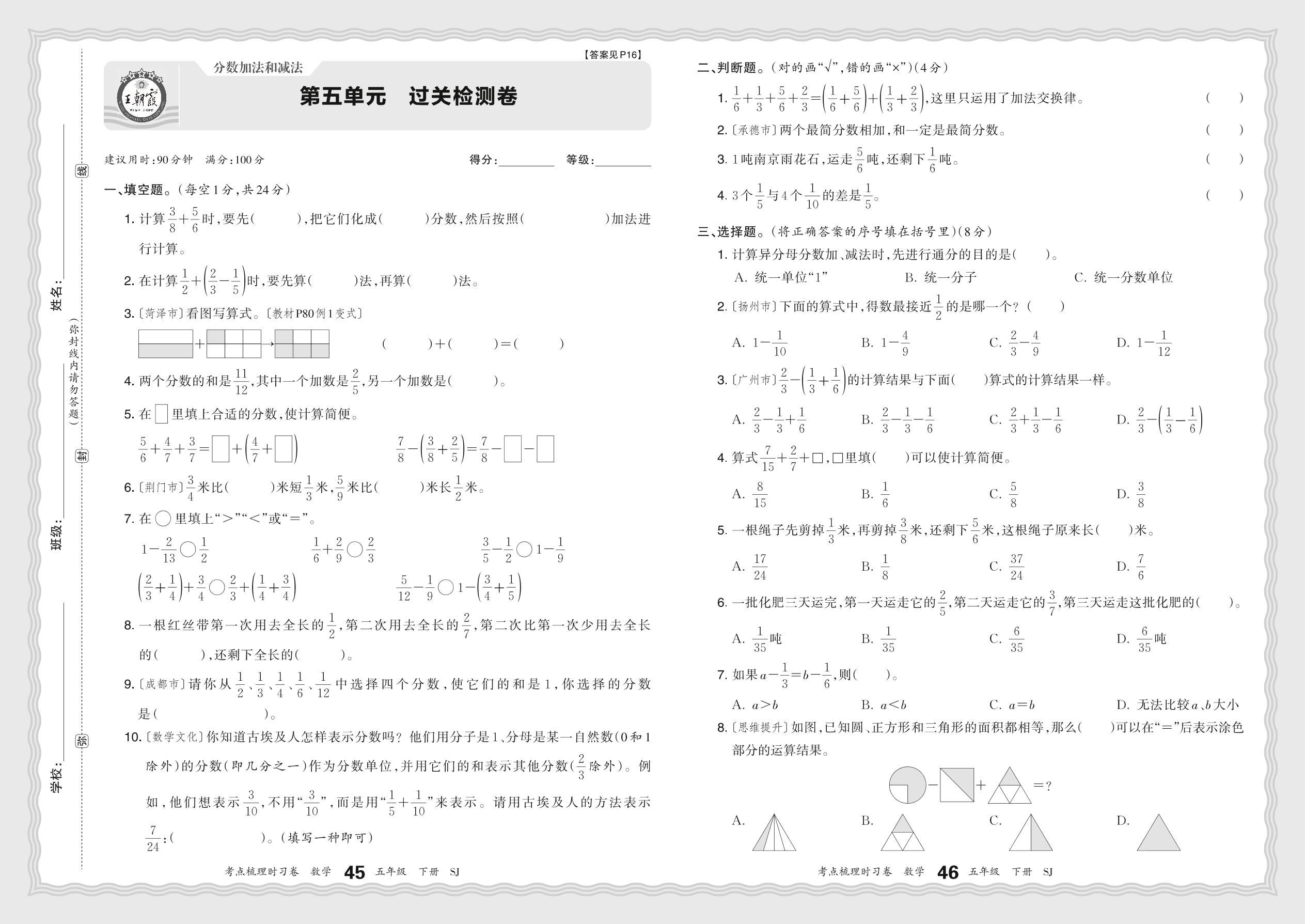 2024春下册五年级数学苏教版 第五单元 过关检测卷