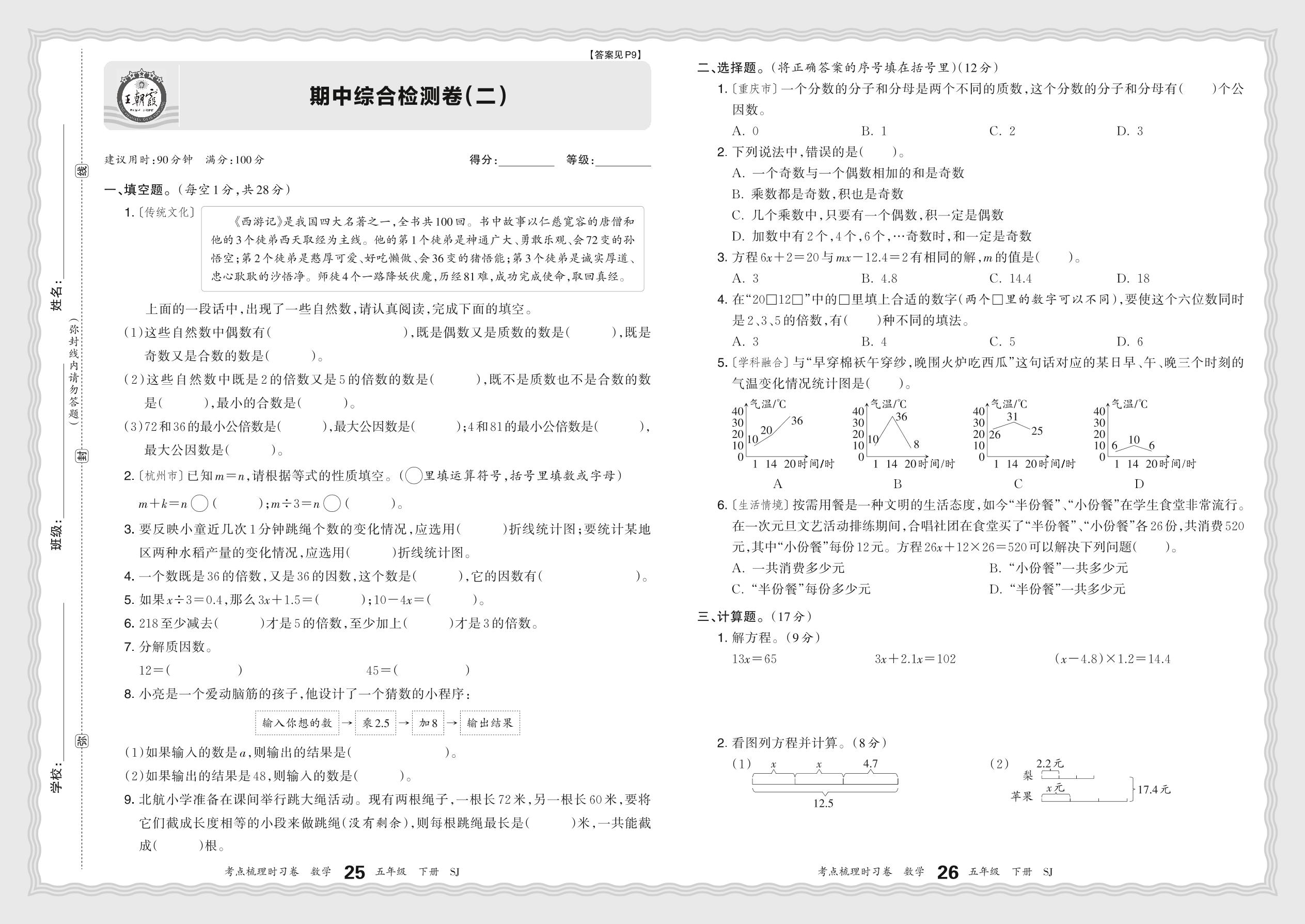 2024春下册五年级数学苏教版 期中综合检测卷(二)