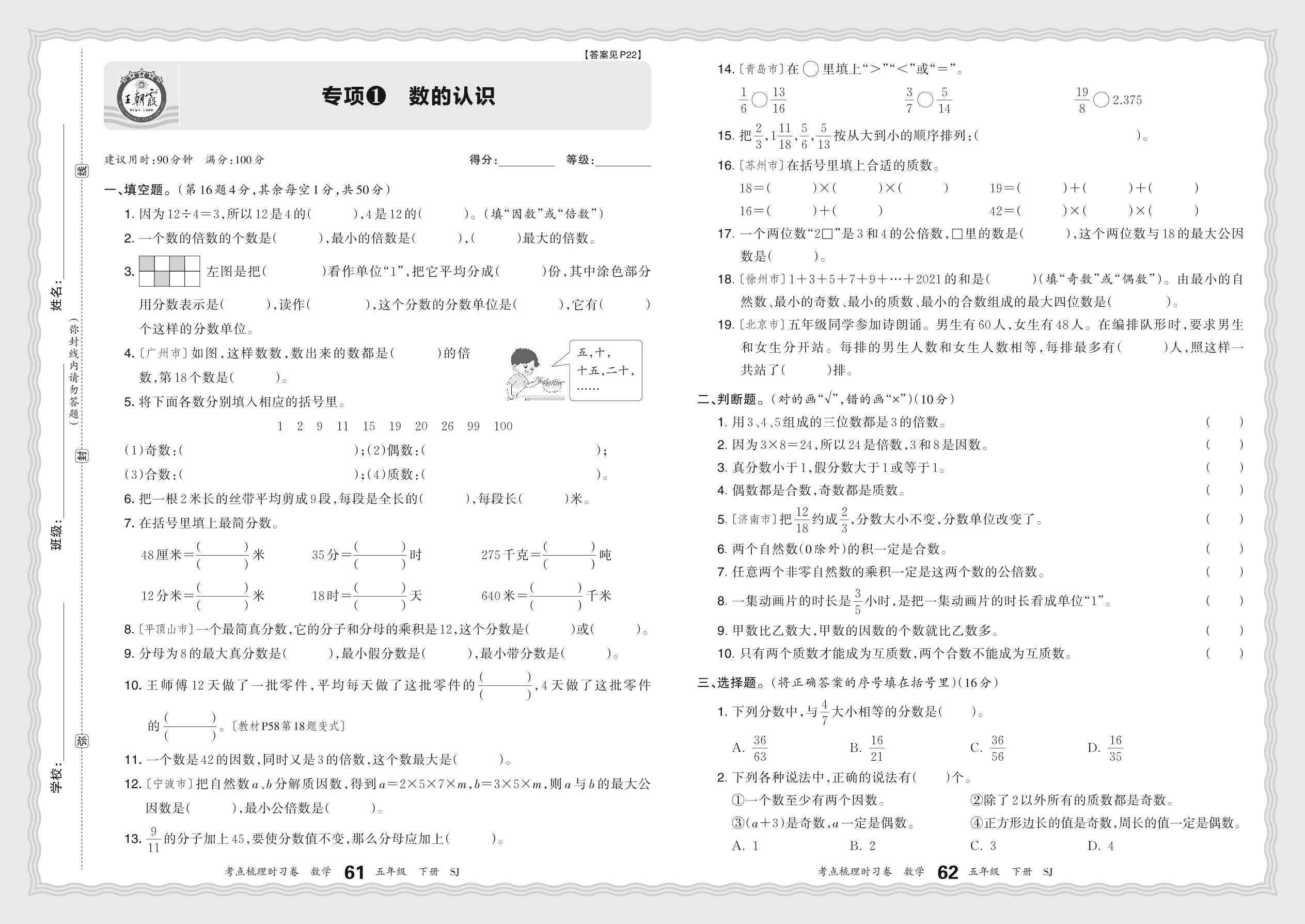 2024春下册五年级数学苏教版 期末专项卷KD版·数的认识【1】