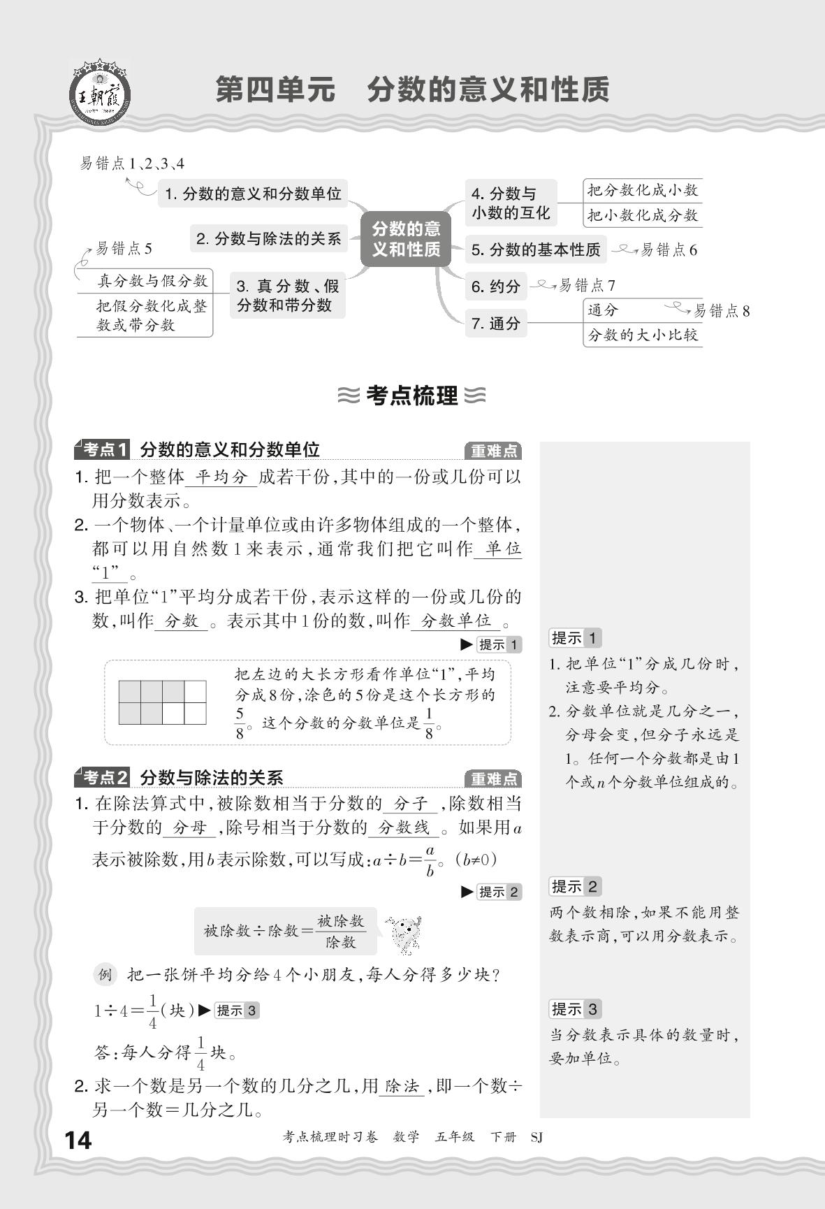 2024春下册五年级数学苏教版 考点梳理手册——第四单元 分数的意义和性质