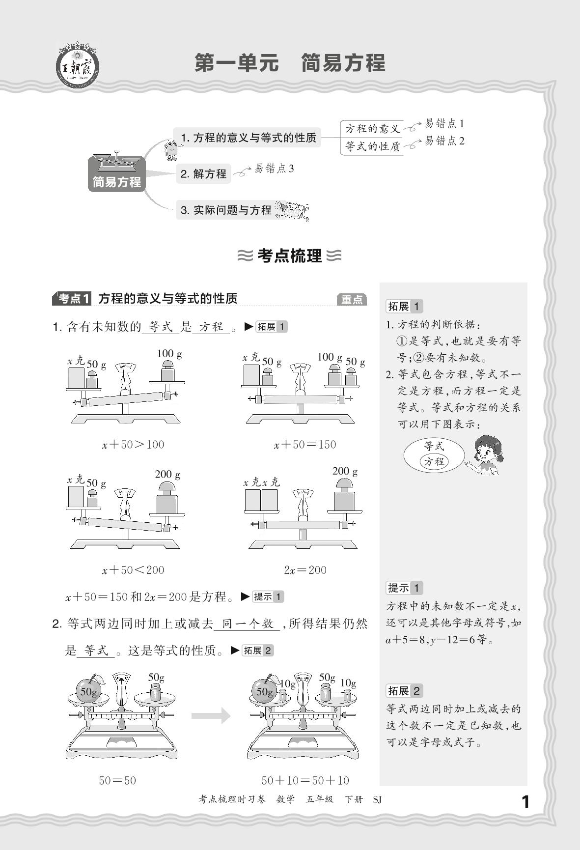 2024春下册五年级数学苏教版 考点梳理手册——第一单元 简易方程