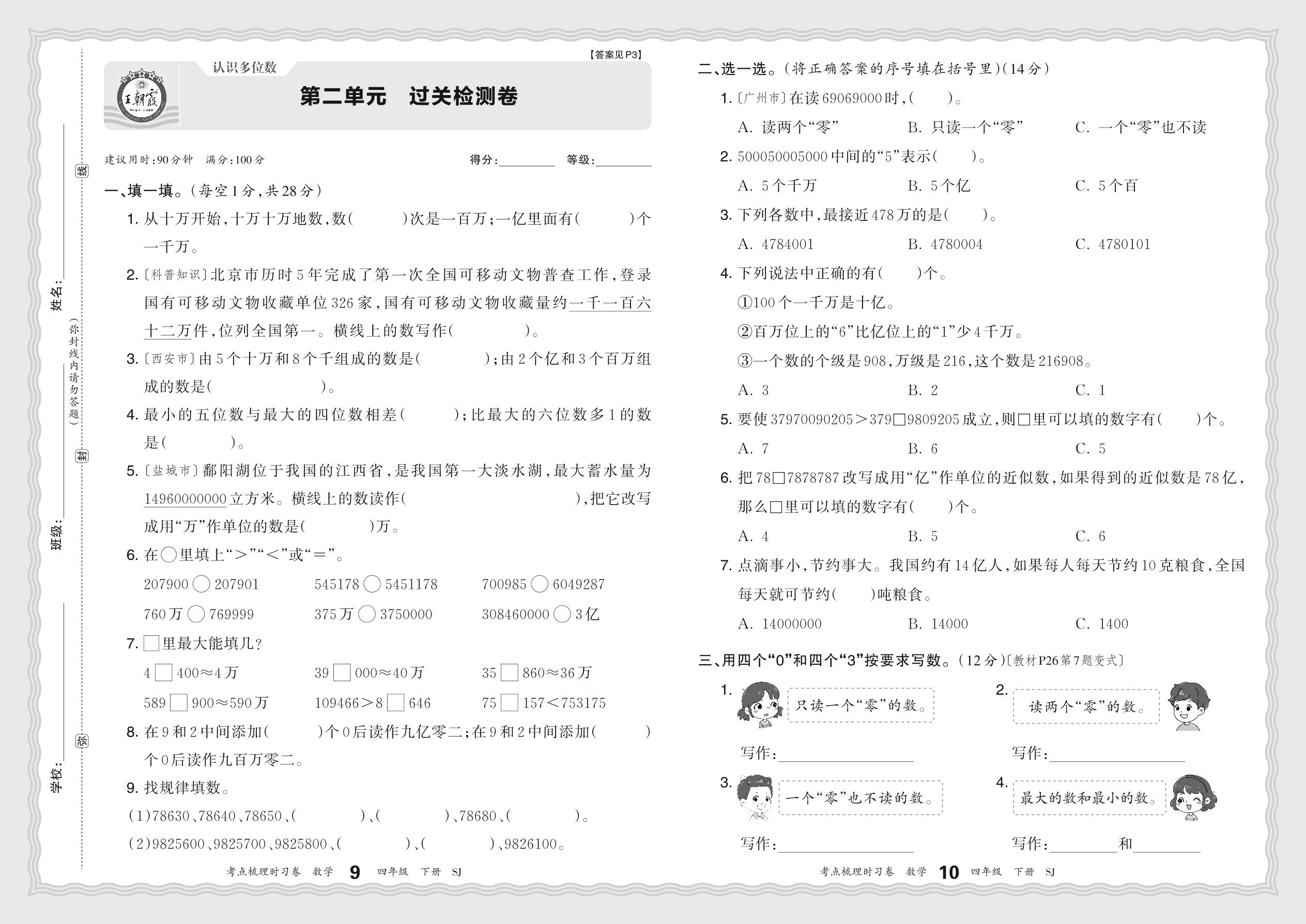 2024春下册四年级数学苏教版 第二单元 过关检测卷