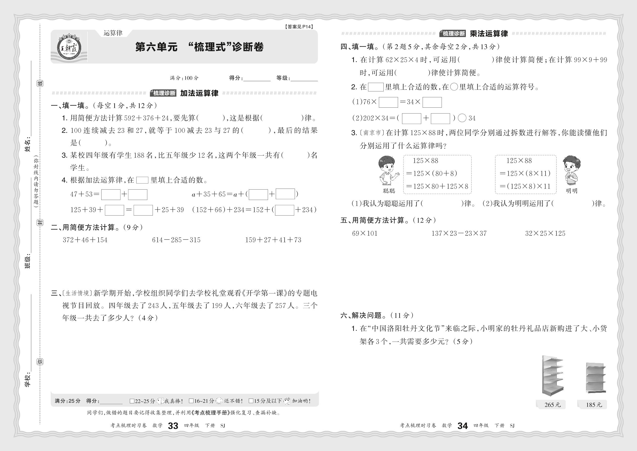 2024春下册四年级数学苏教版 第六单元 “梳理式”诊断卷
