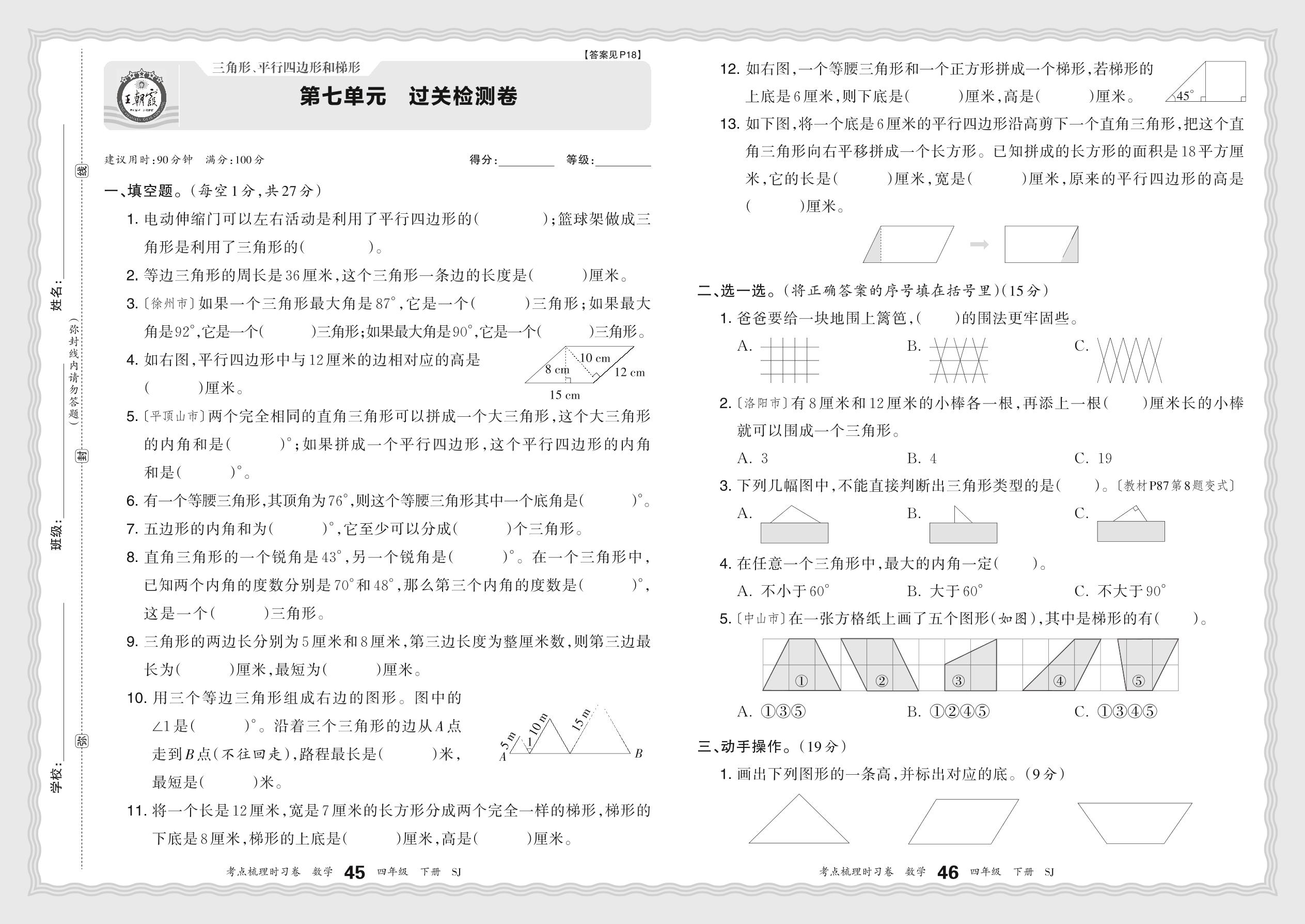2024春下册四年级数学苏教版 第七单元 过关检测卷