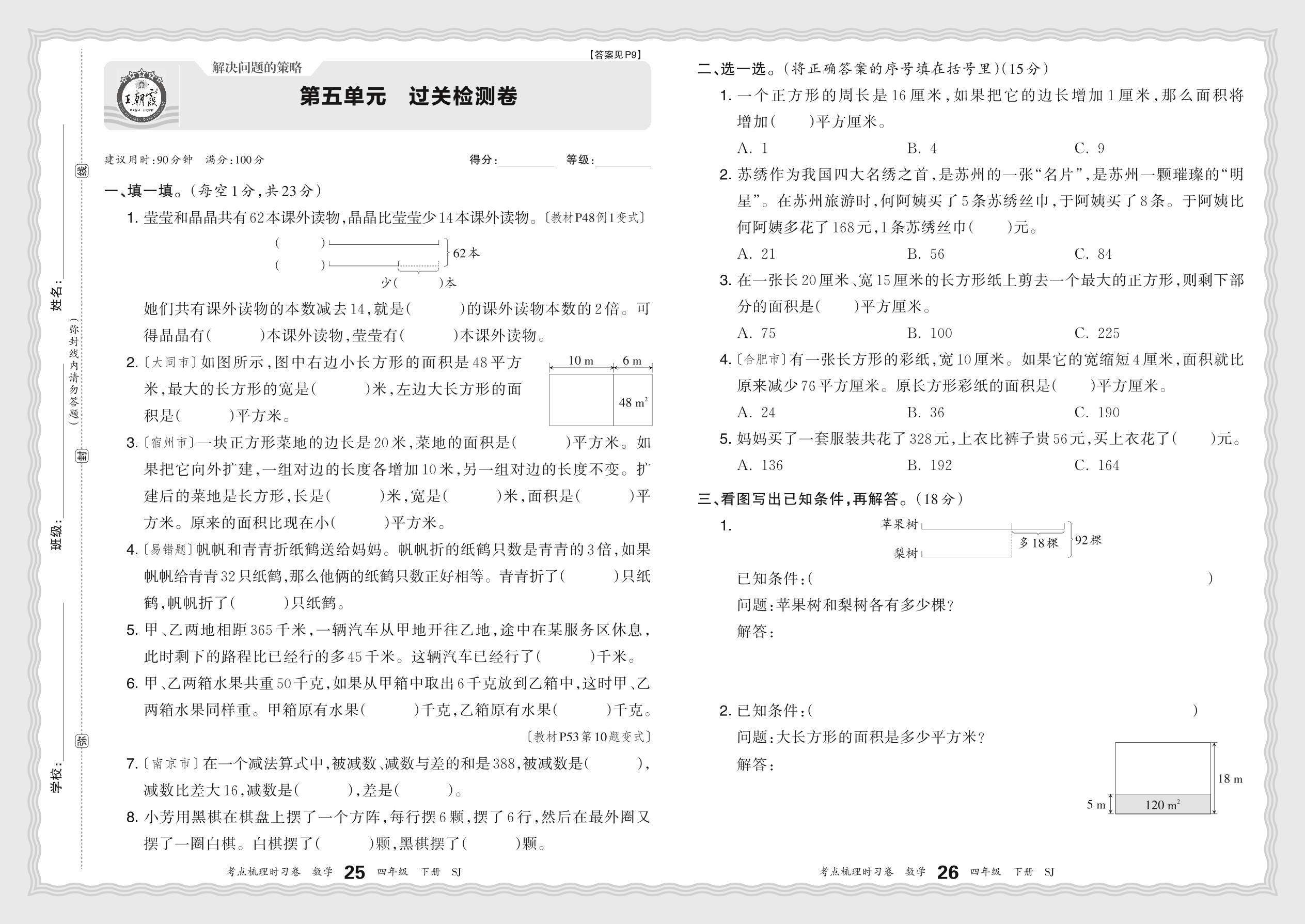 四年级数学苏教版下册单元卷