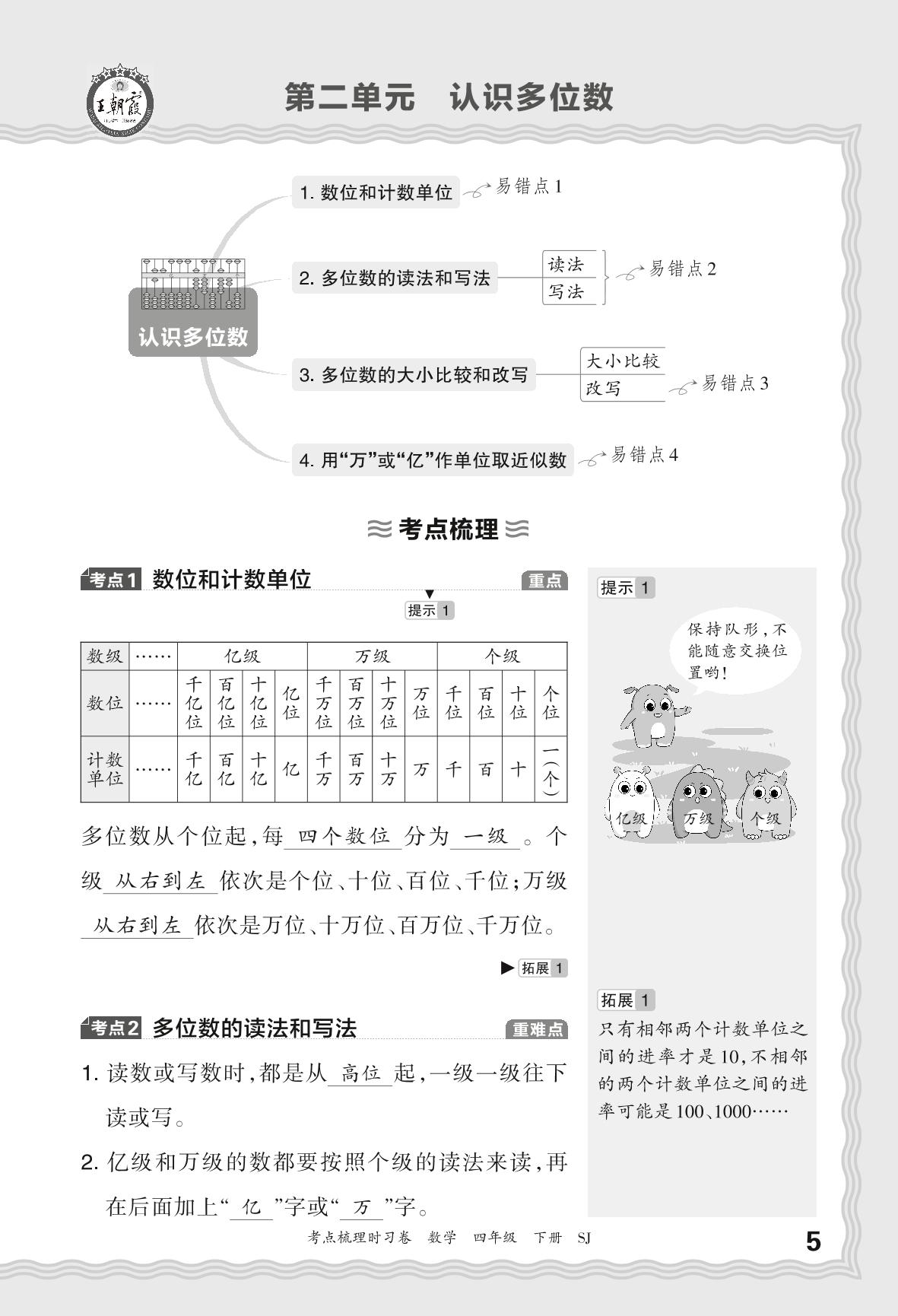 2024春下册四年级数学苏教版 考点梳理手册——第二单元 认识多位数