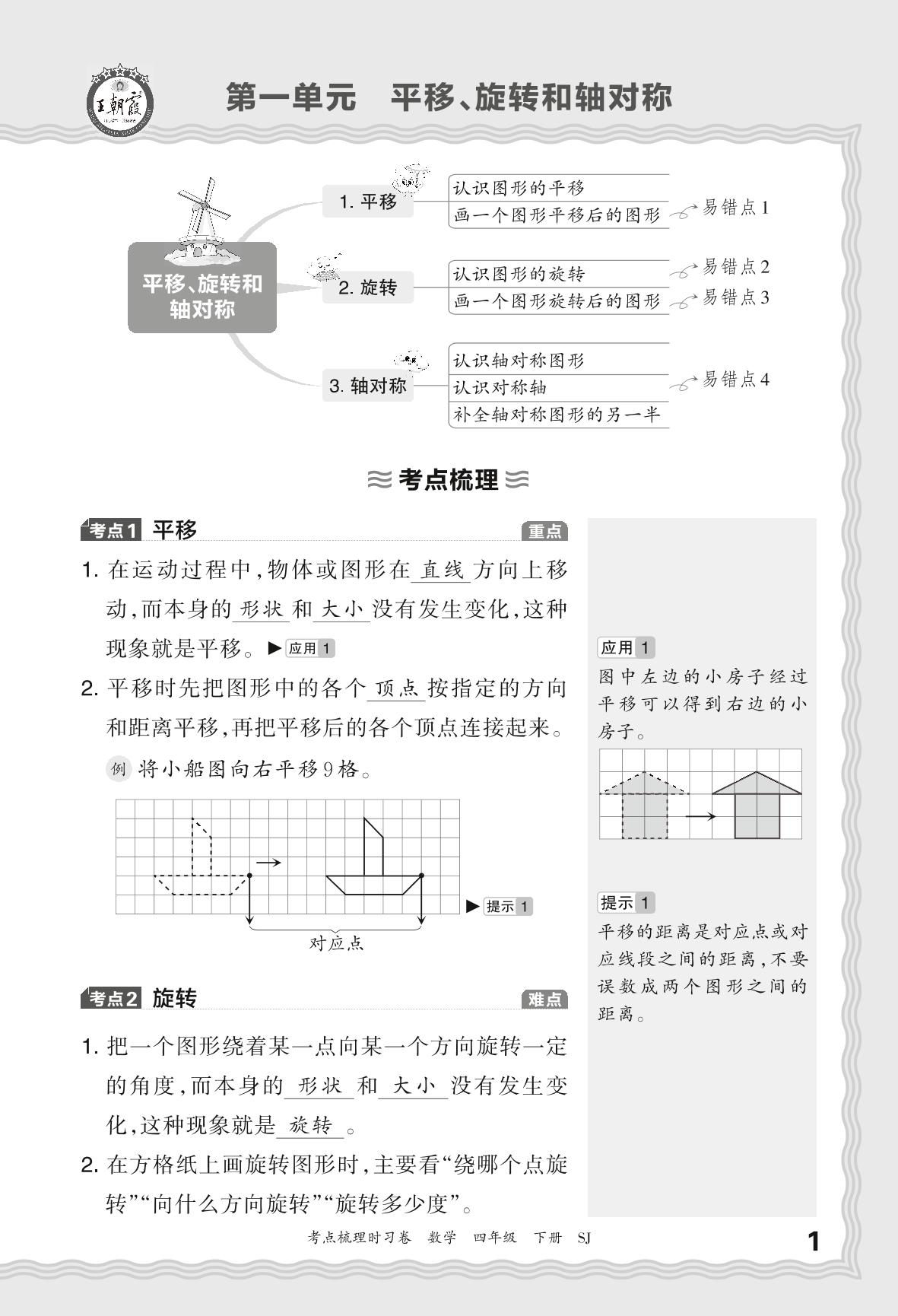 2024春下册四年级数学苏教版 考点梳理手册——第一单元 平移、旋转和对称轴