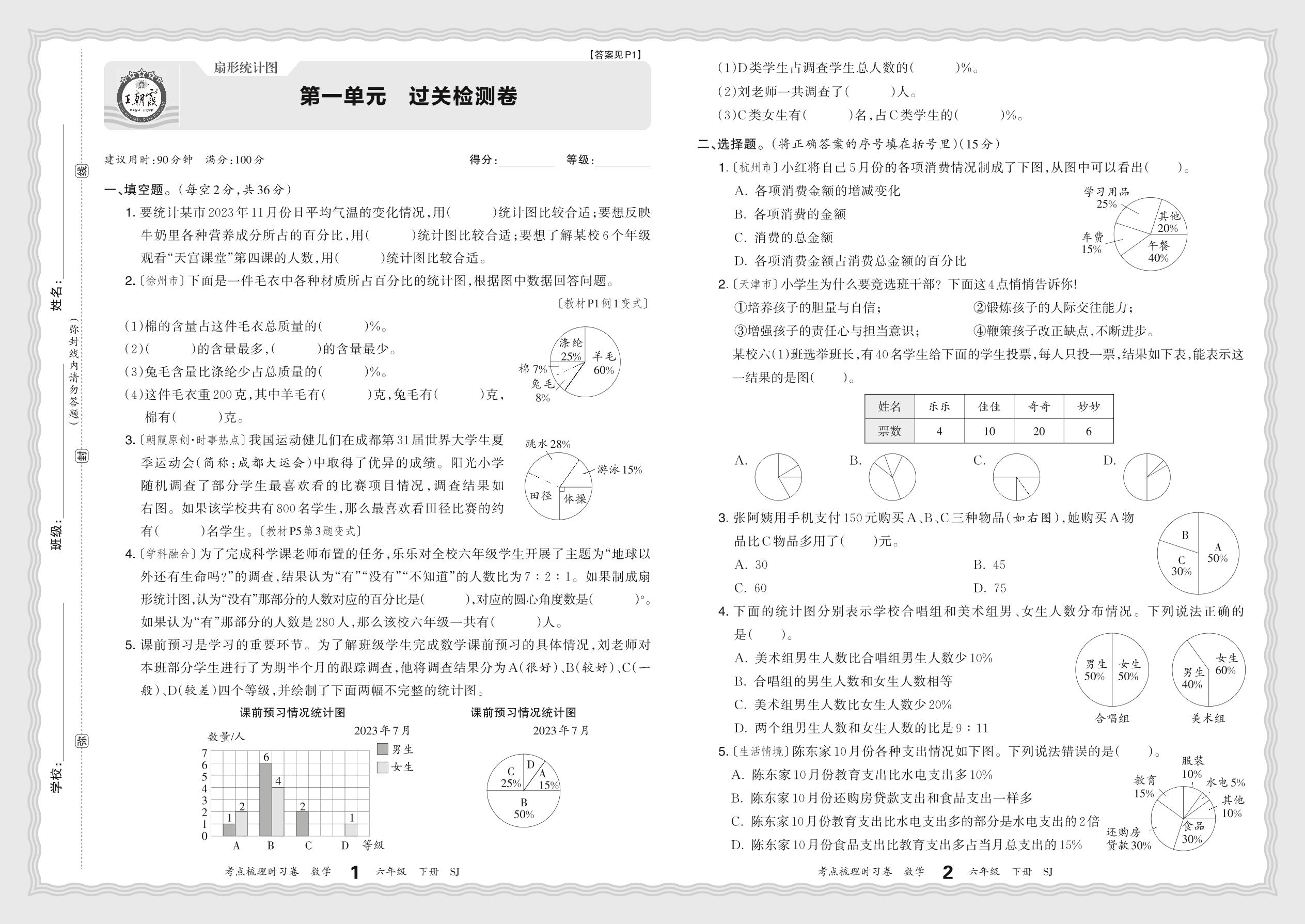 2024春下册六年级数学苏教版 第一单元 过关检测卷