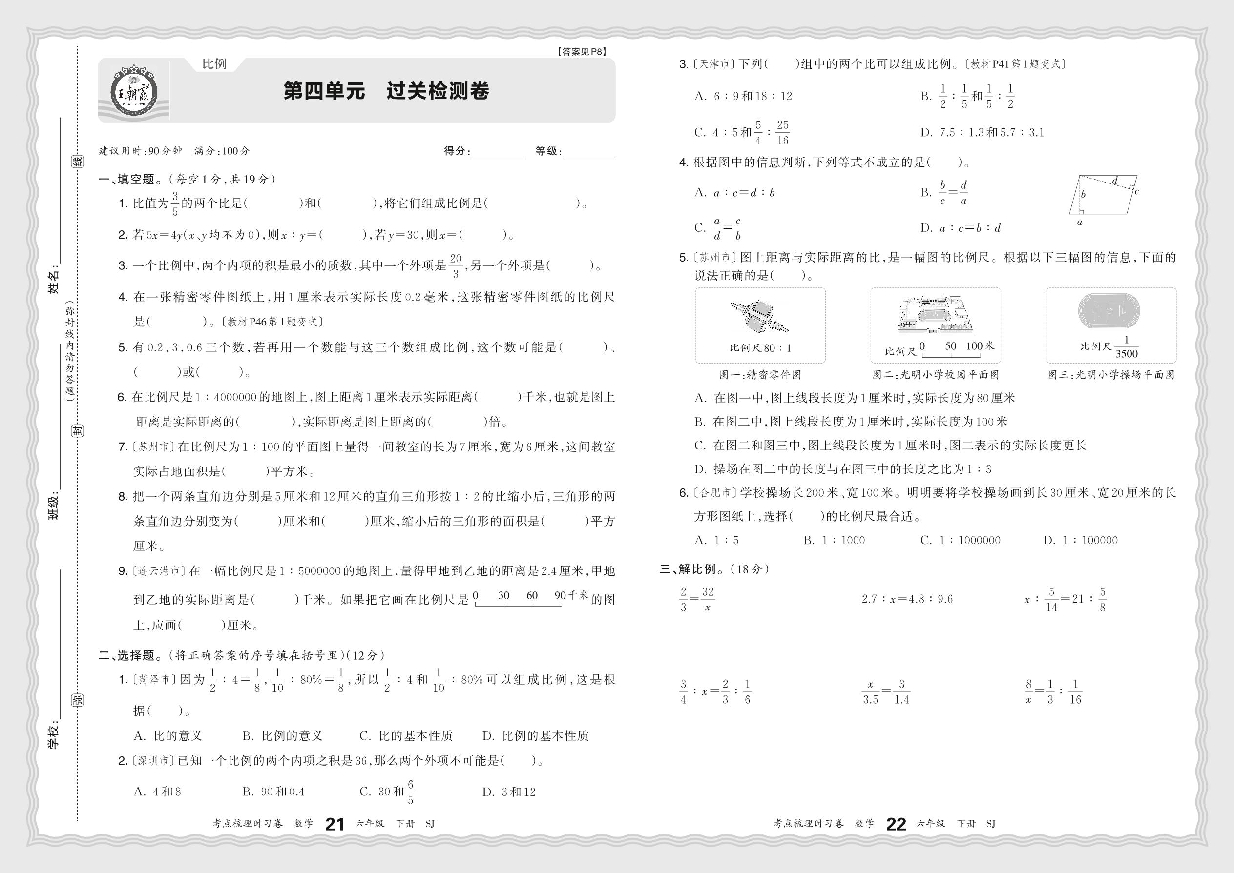 2024春下册六年级数学苏教版 第四单元 过关检测卷