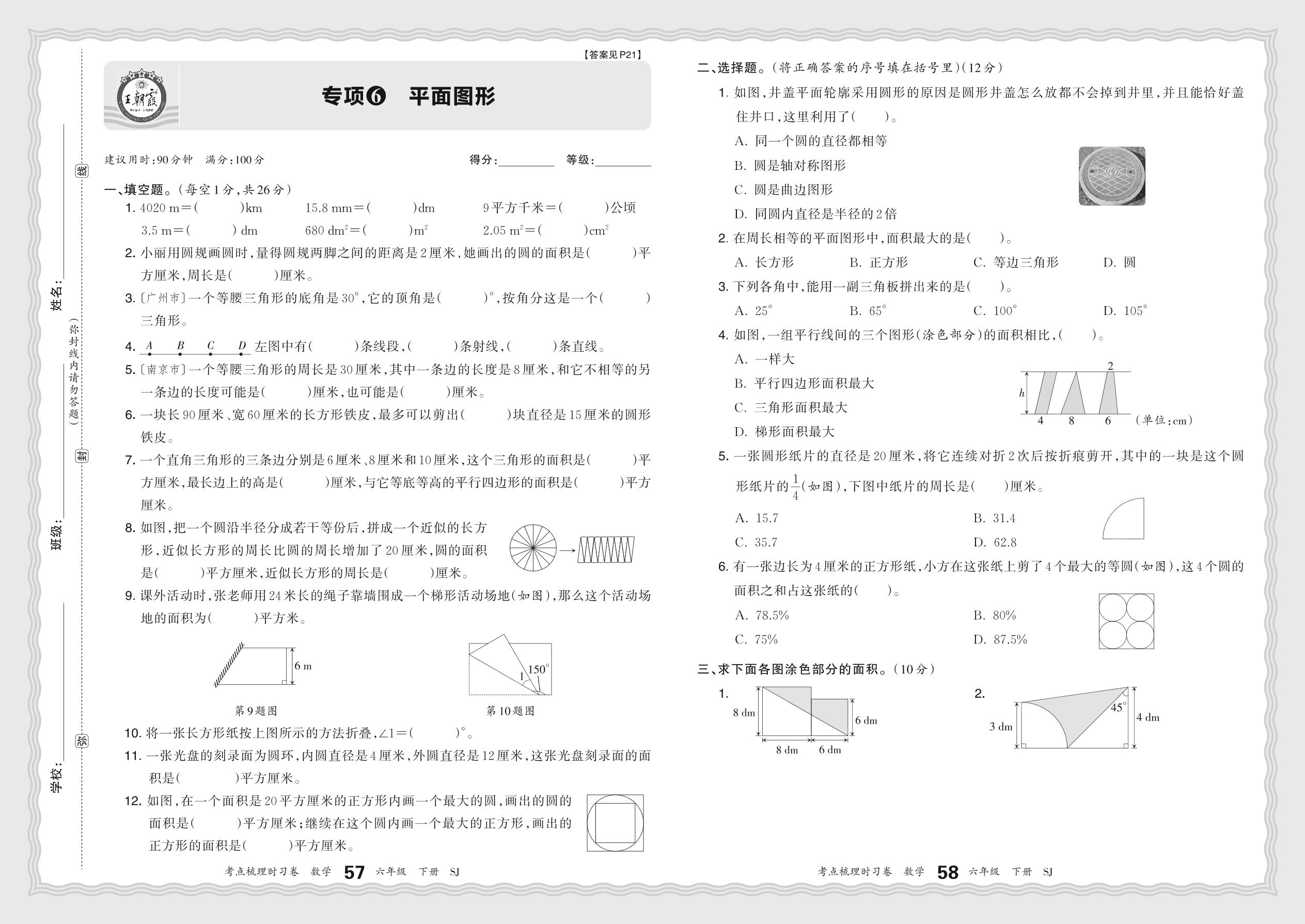 2024春下册六年级数学苏教版 期末专项卷KD版·平面图形【6】