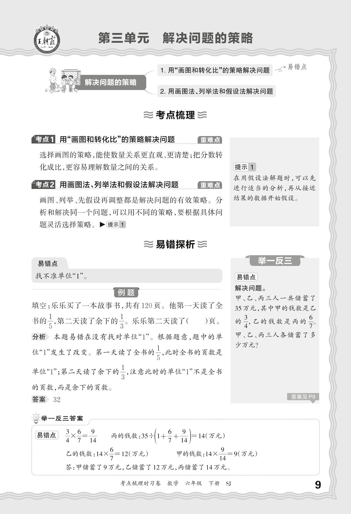 2024春下册六年级数学苏教版 考点梳理手册——第三单元 解决问题的策略