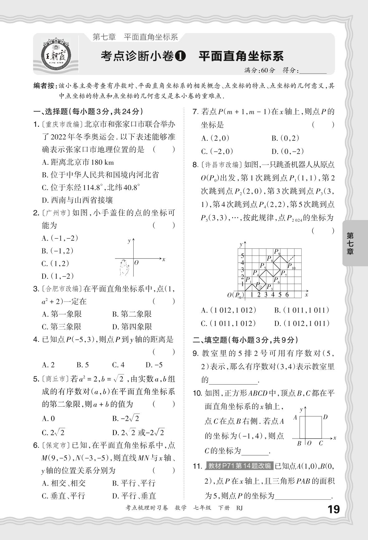 2024春下册七年级数学人教版 第七章 考点诊断小卷 平面直角坐标系【1】