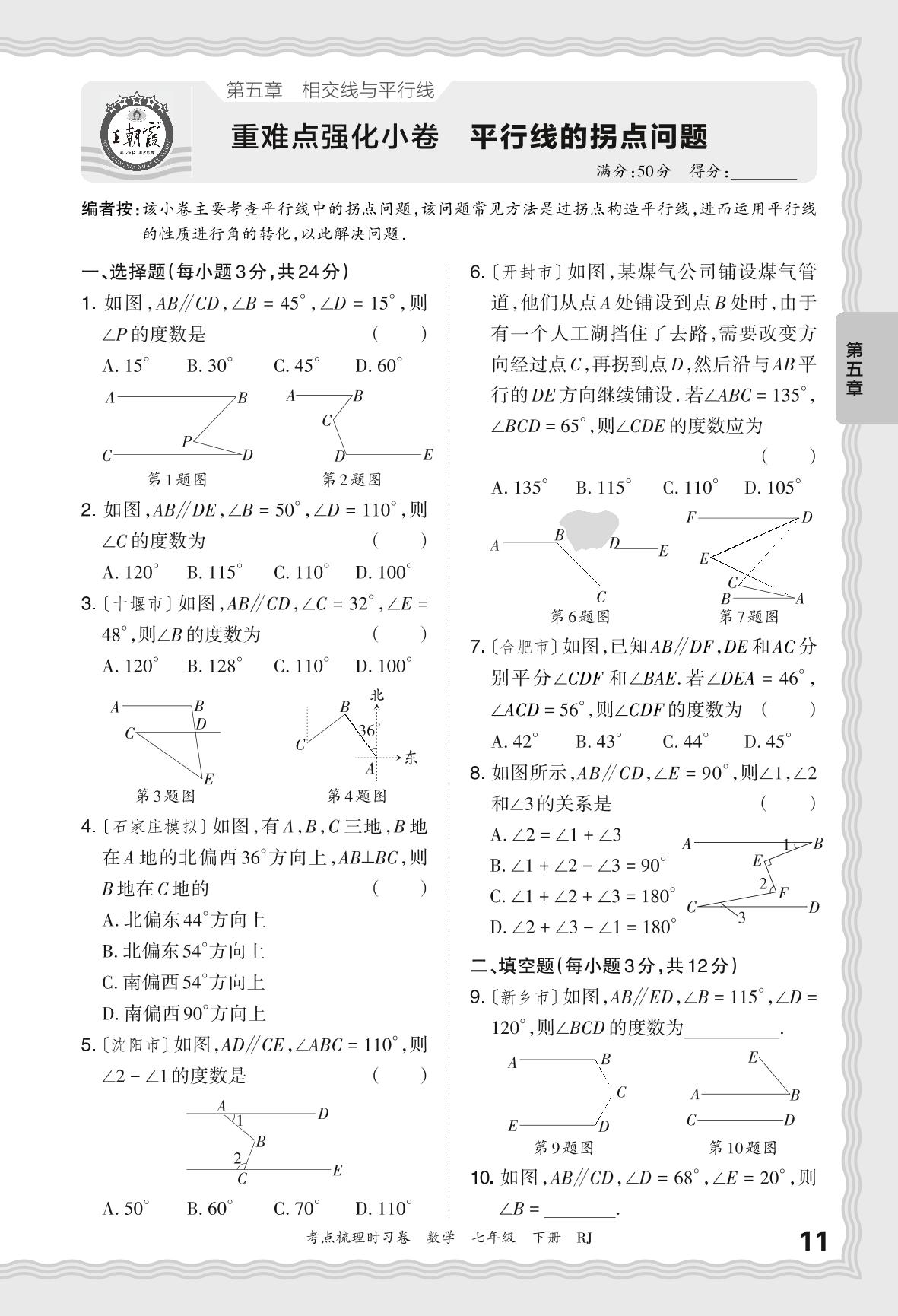 2024春下册七年级数学人教版 第五章 重难点强化小卷 平行线的拐点问题