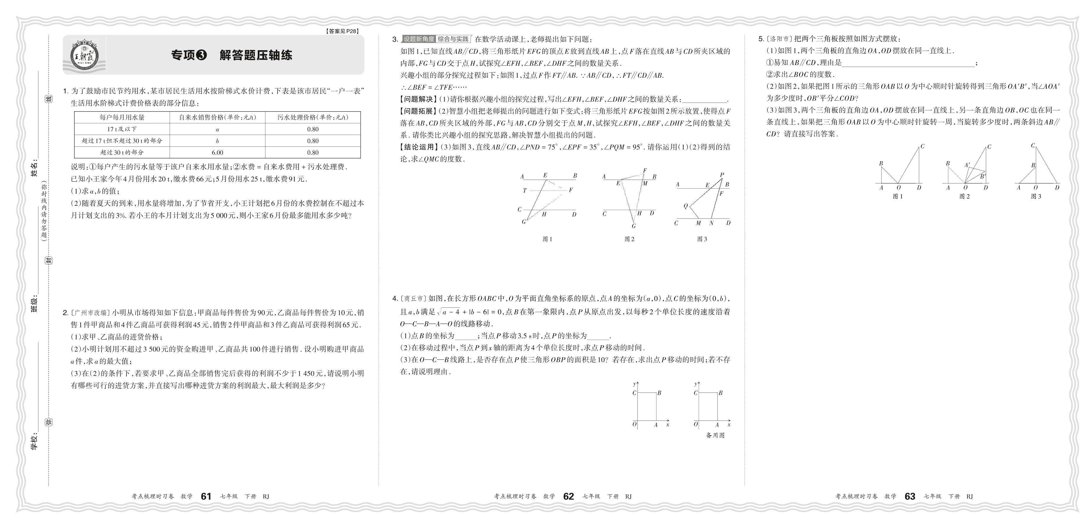 2024春下册七年级数学人教版 期末专项卷KD版·解答题压轴练【3】