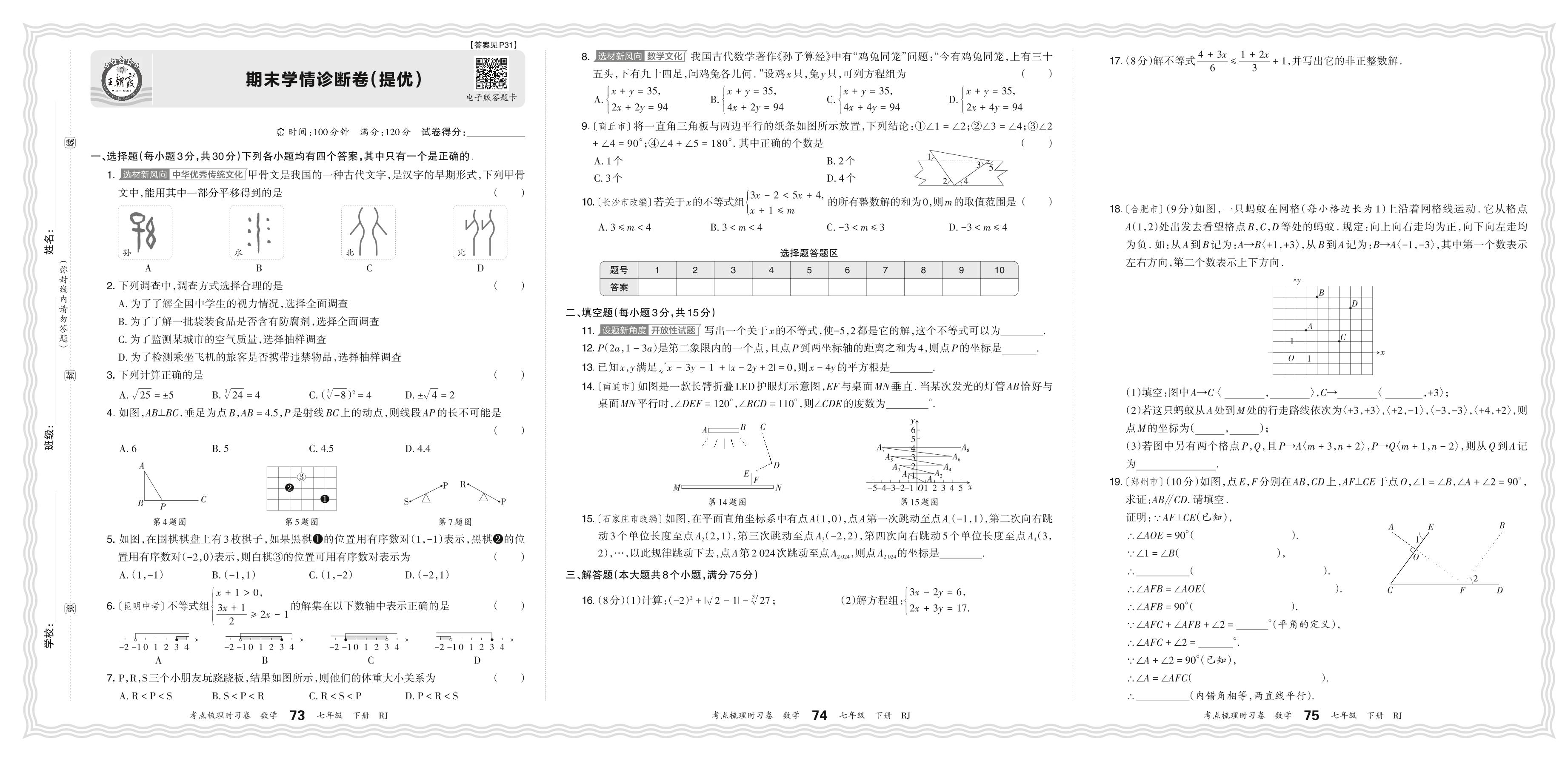 2024春下册七年级数学人教版 期末学情诊断卷(提优)