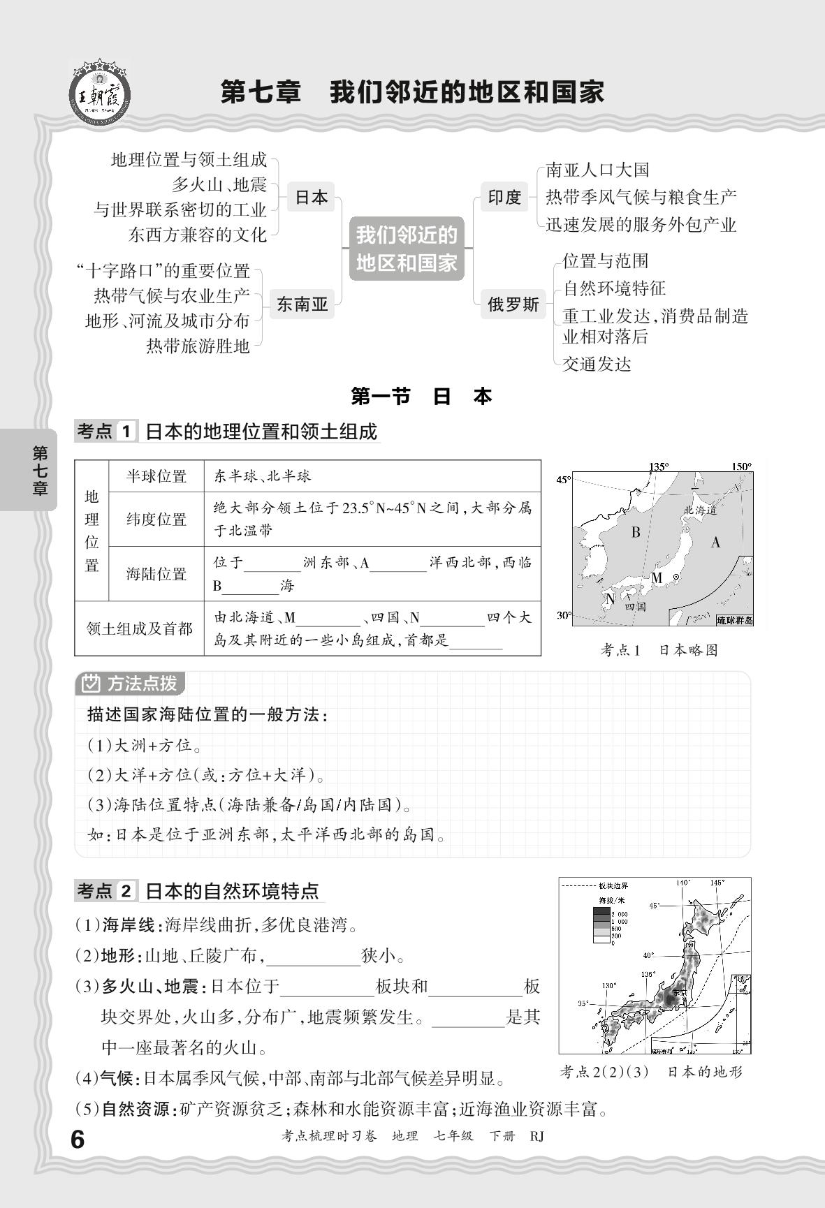 2024春下册七年级地理人教版 考点梳理手册——第七章 我们邻近的地区和国家