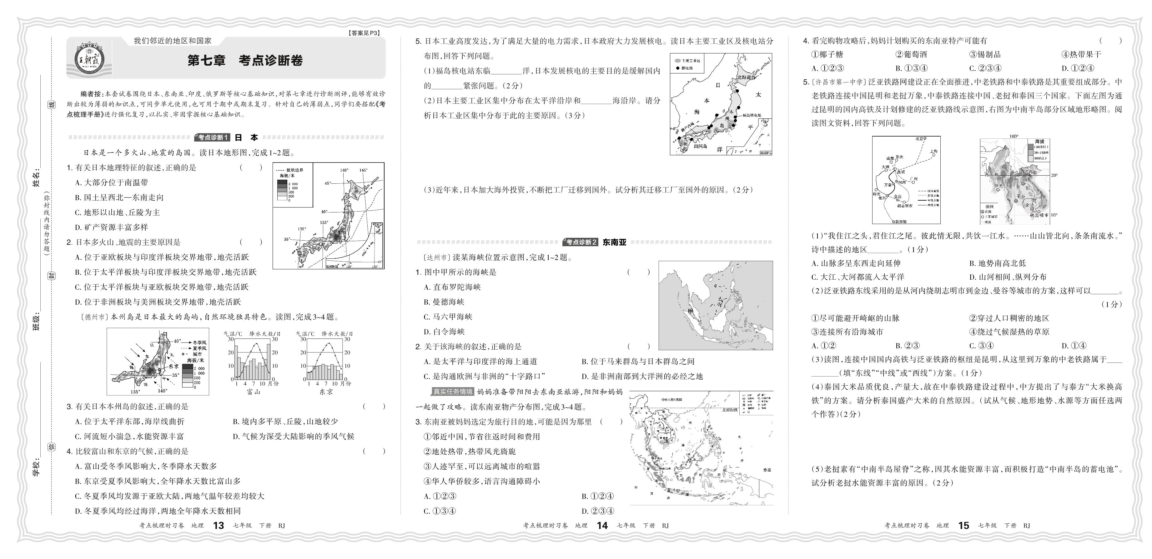 2024春下册七年级地理人教版 第七章 考点诊断卷