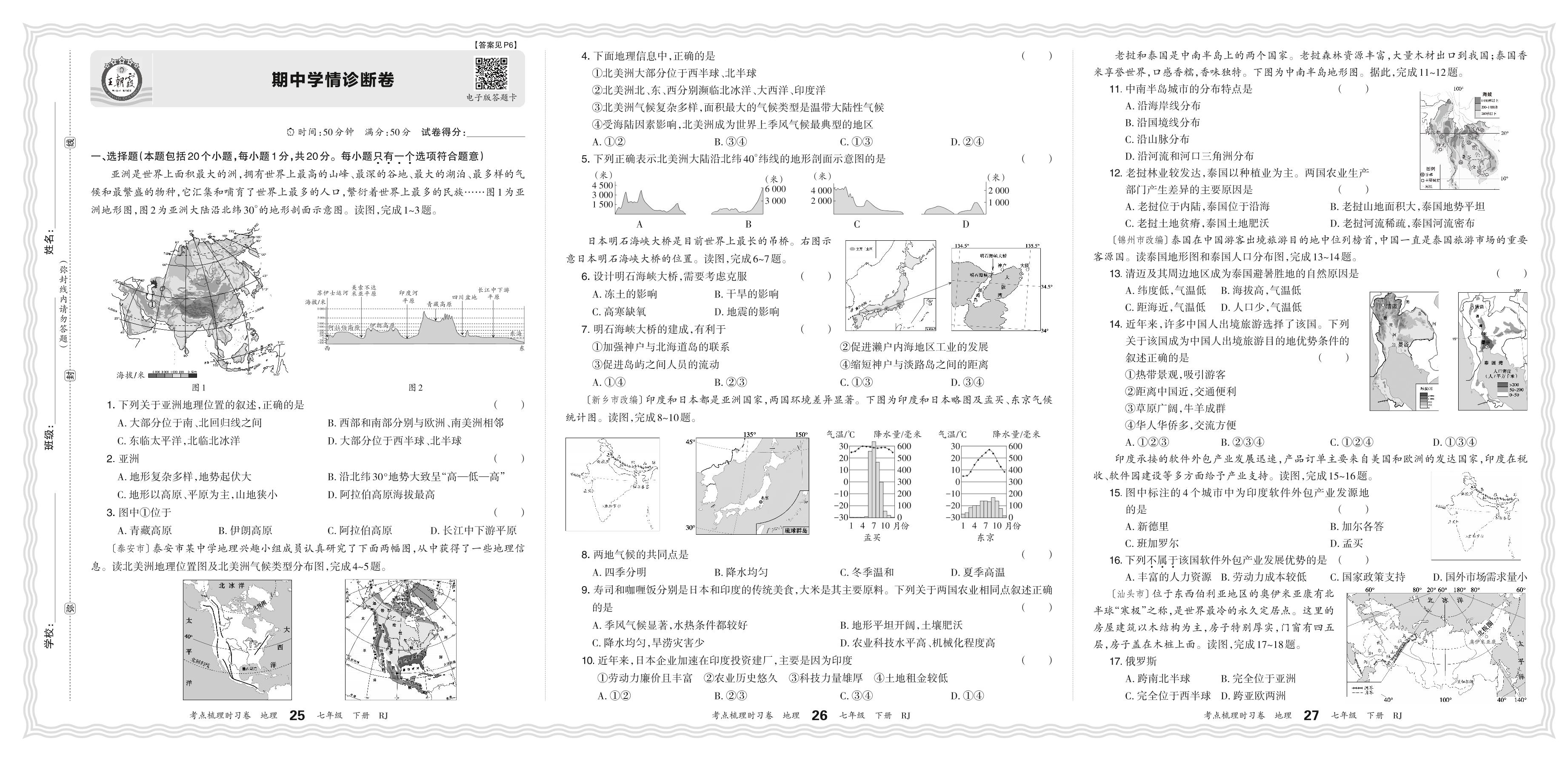 七年级地理人教版下册期中卷