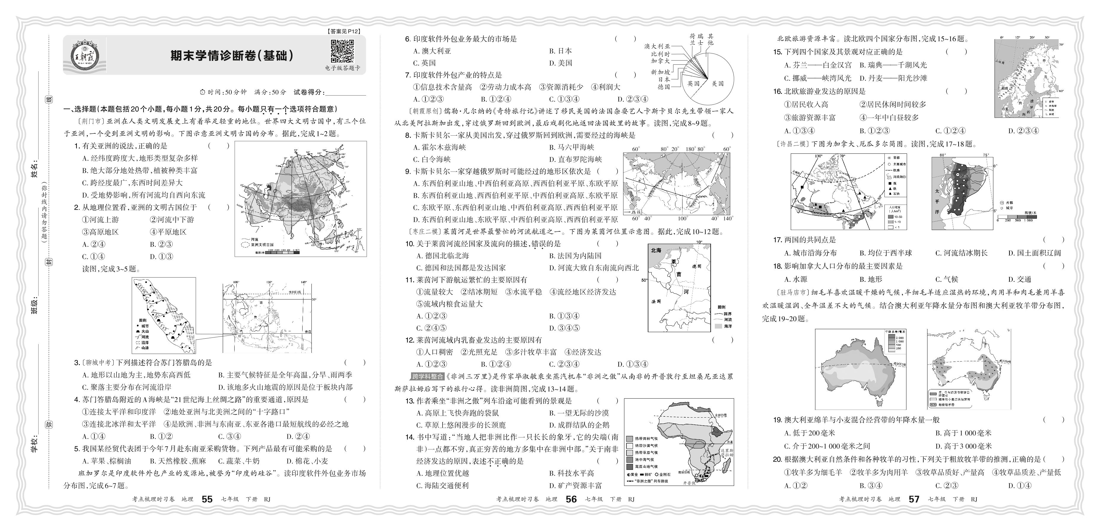 2024春下册七年级地理人教版 期末学期诊断卷(基础)