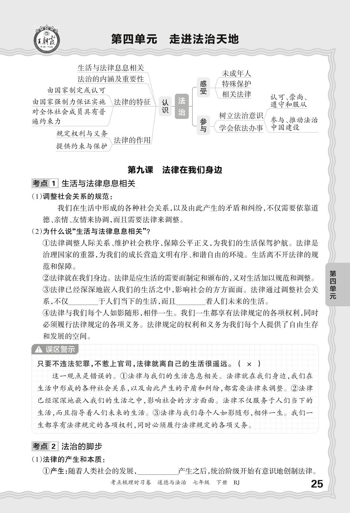 2024春下册七年级道德与法治人教版 考点梳理手册——第四单元 走进法治天地