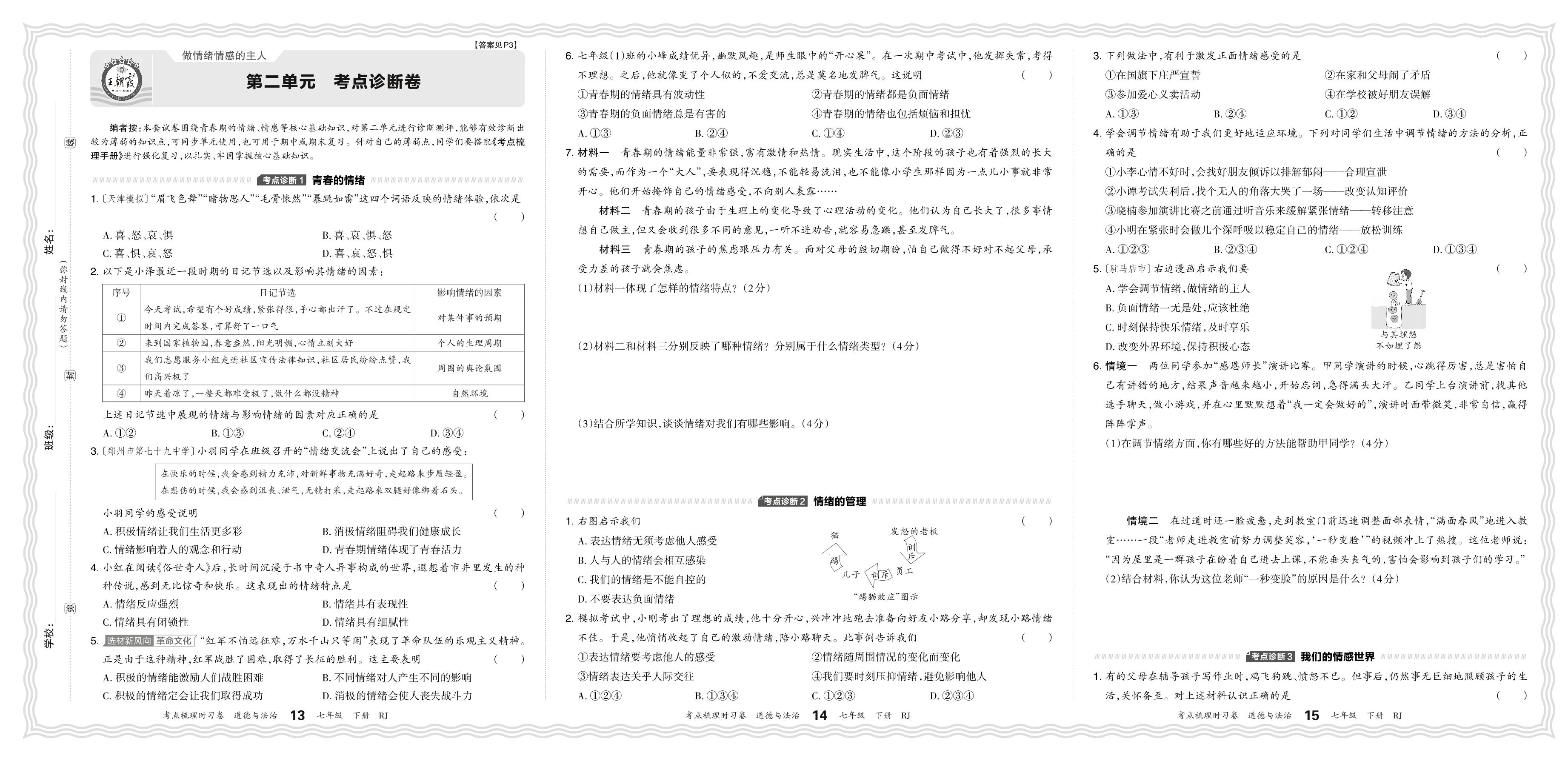2024春下册七年级道德与法治人教版 第二单元 考点诊断卷