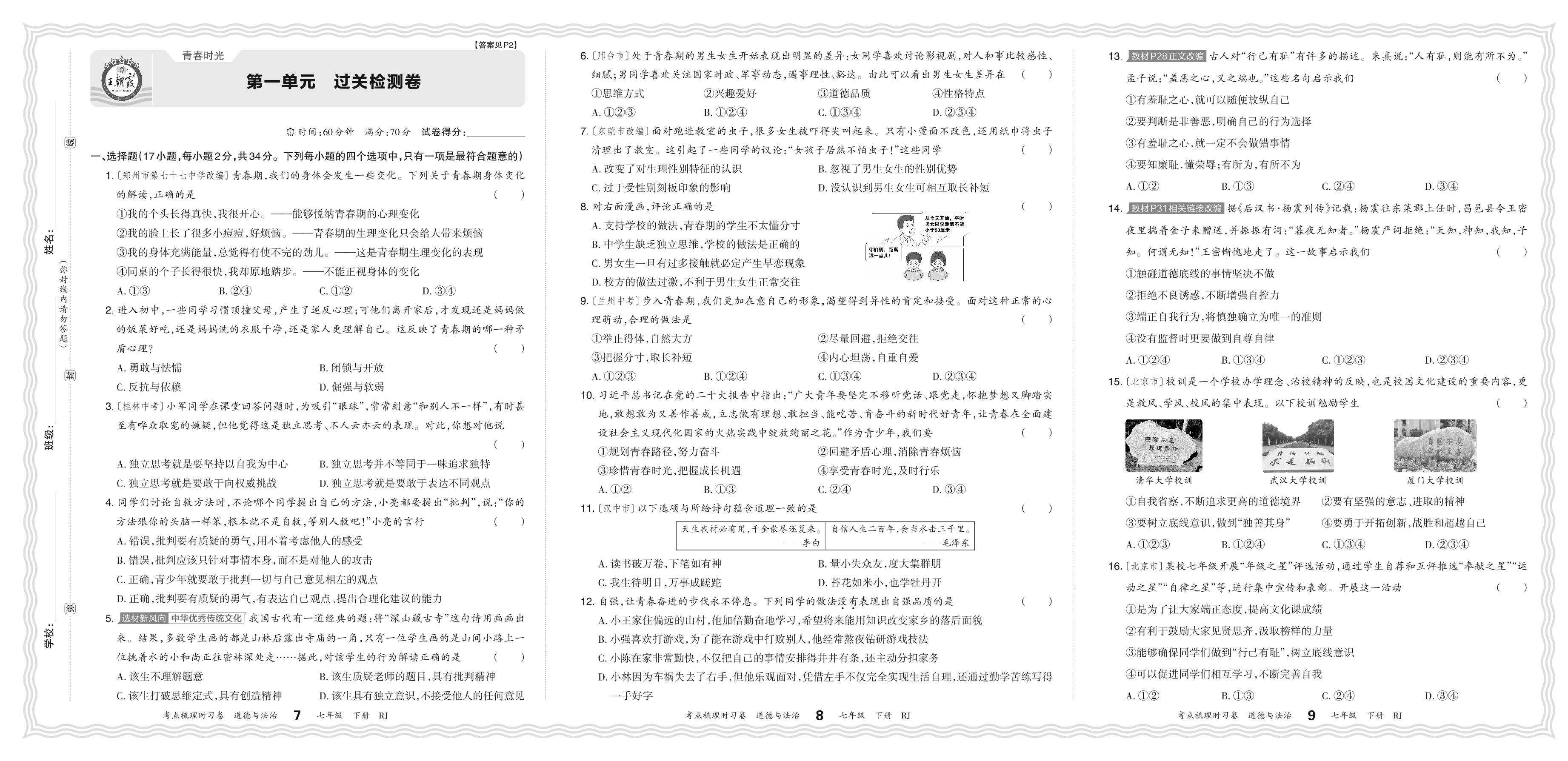 七年级道德与法治人教版下册单元卷
